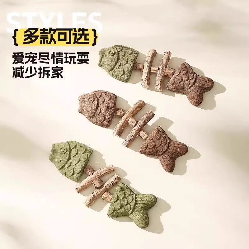 고양이 장난감 물고기 뼈 Polygonum Klubber Catnip Molar 스틱 모방 물고기 Molar Bite-저항하는 자기-Hei-Dedling 고양이 스틱스토어 가기