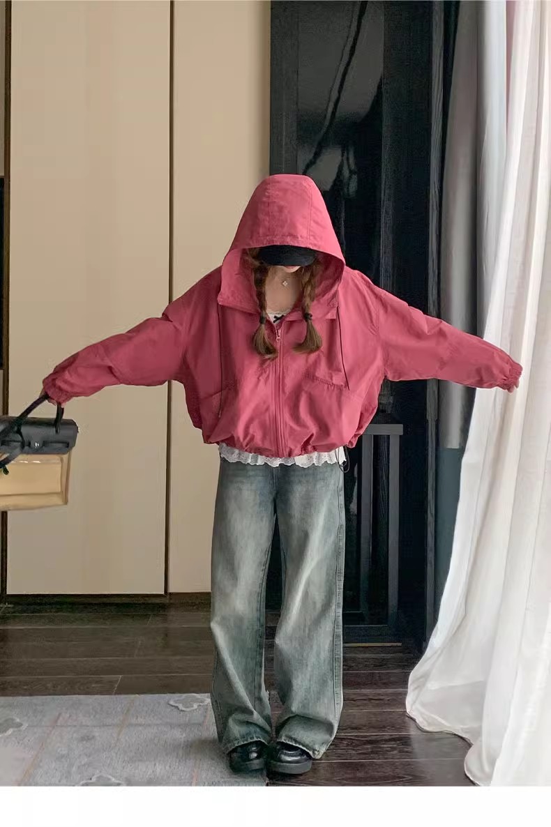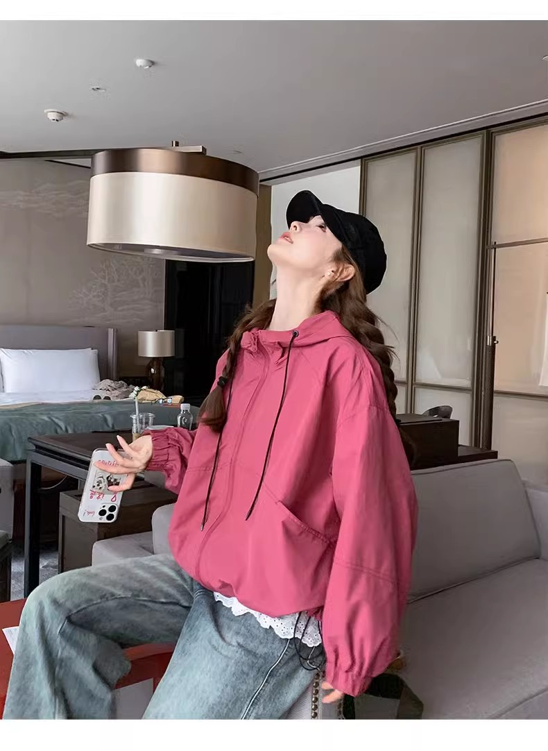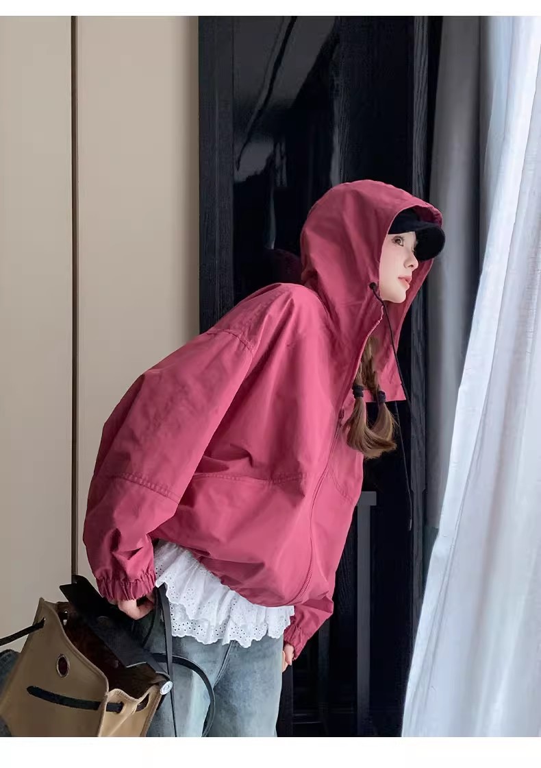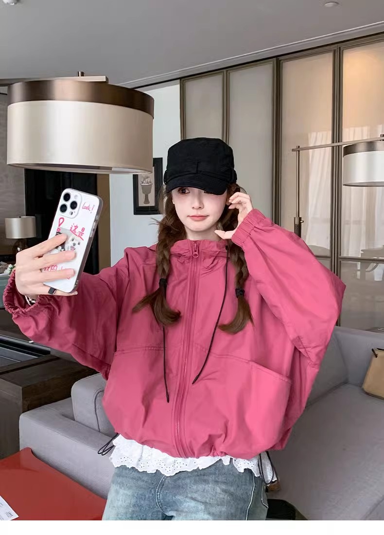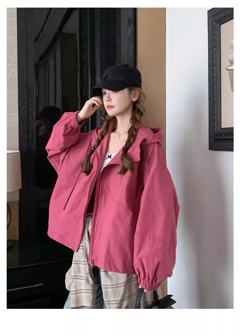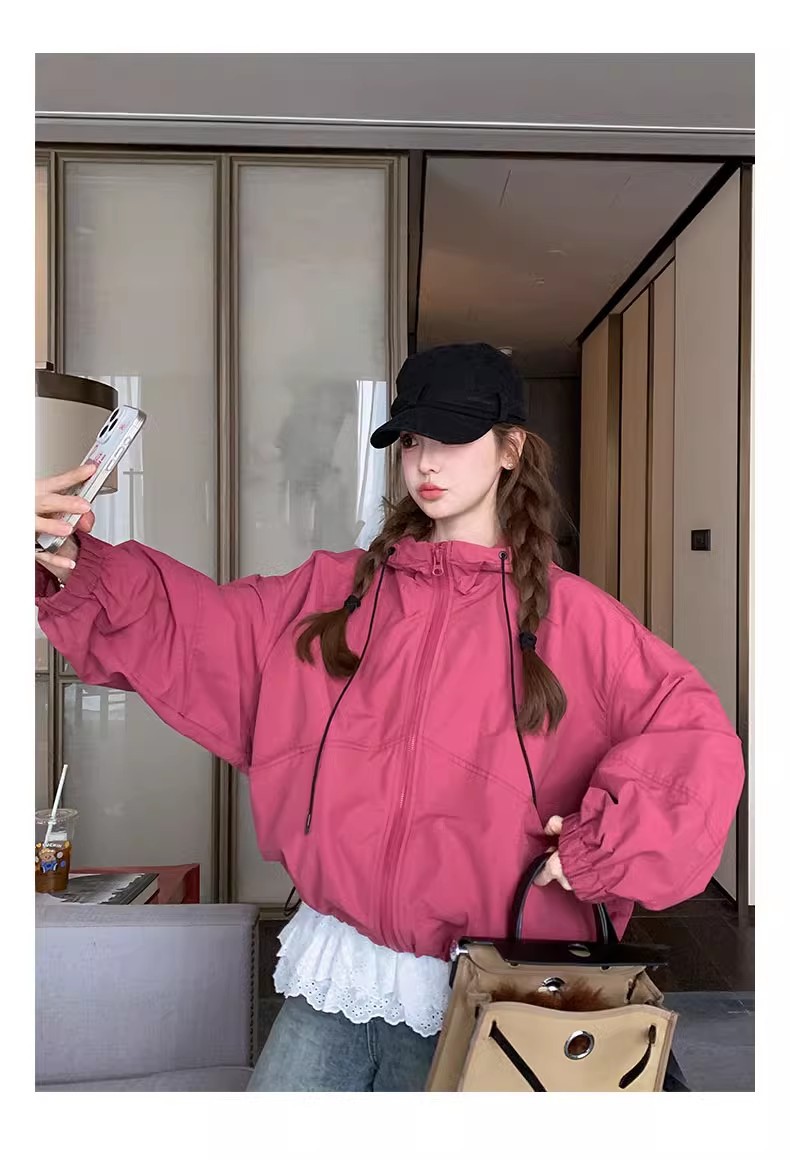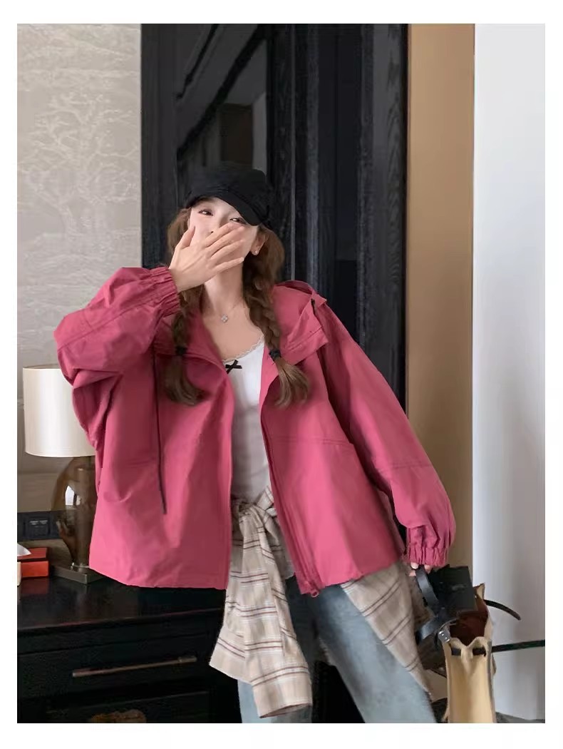 2025 Kaichun 슈퍼 인기 패션 로즈 핑크 코트 여성 작은 툴링 코트 탑 후드 재킷