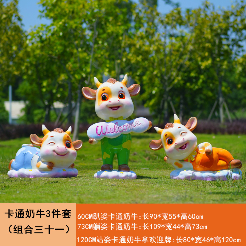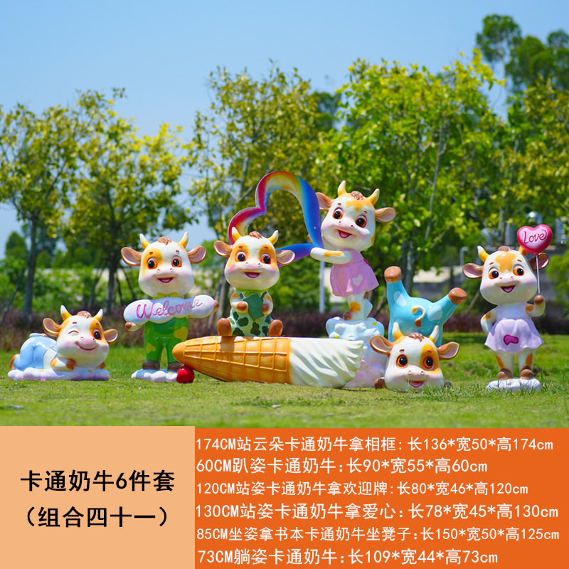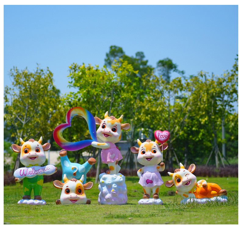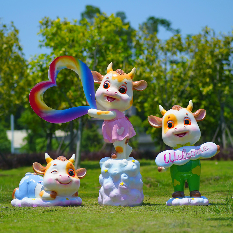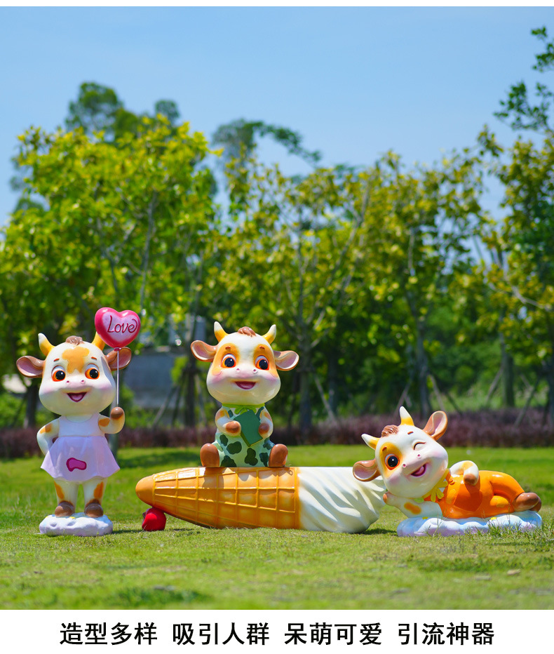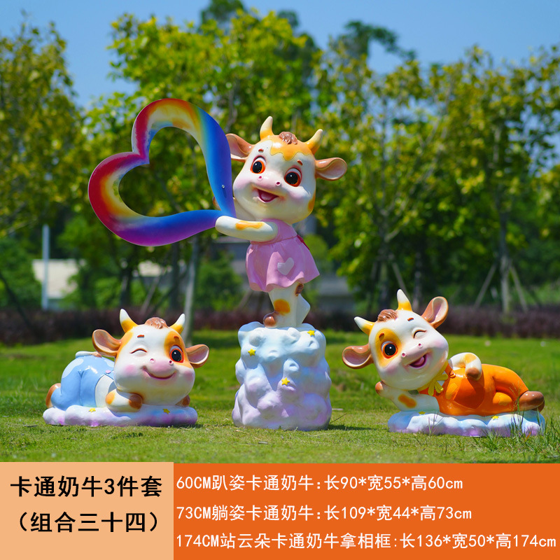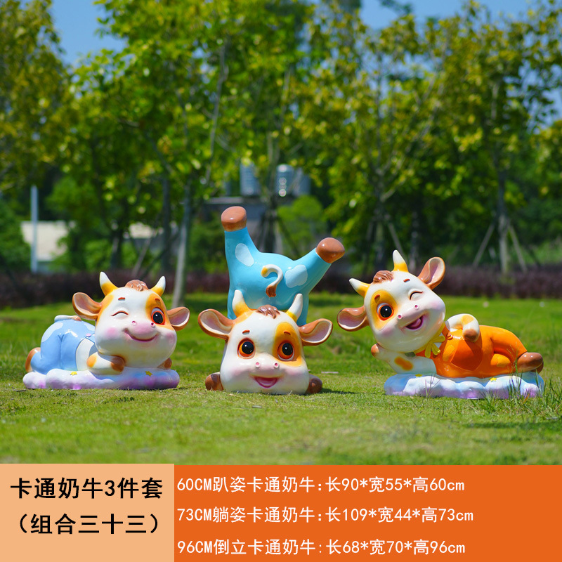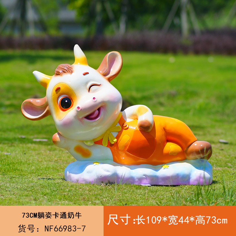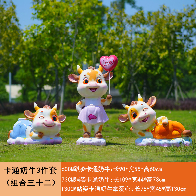 야외 만화 소 조각 시뮬레이션 동물 장식품 인터넷 레드 사진 푸시 카드 공원 경치 지역 잔디 장식스토어 가기