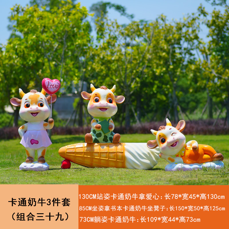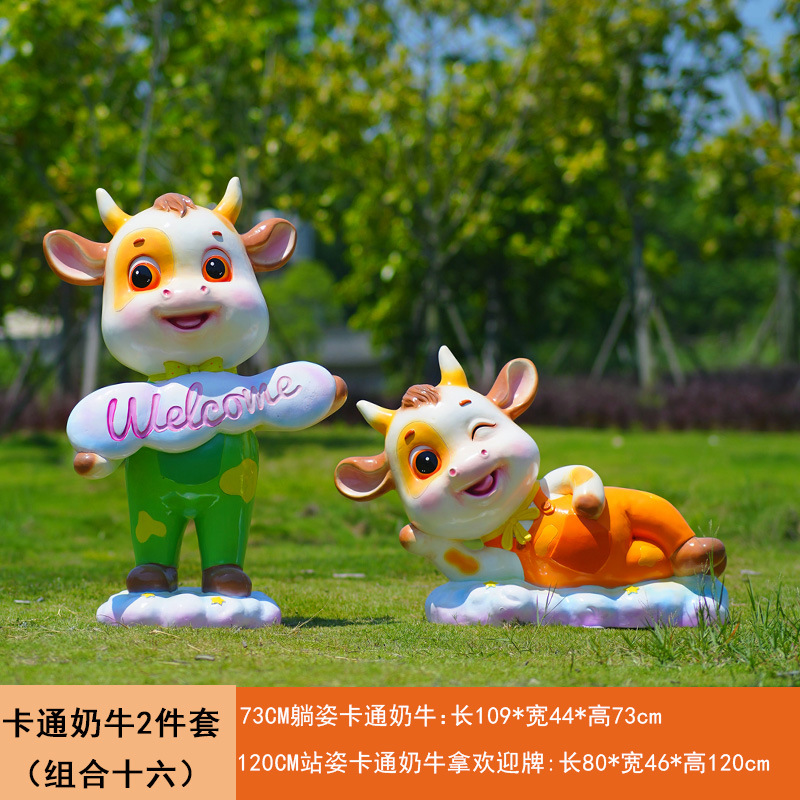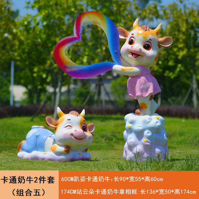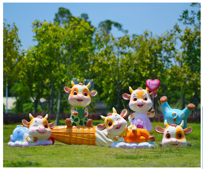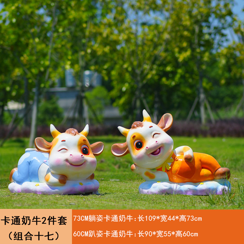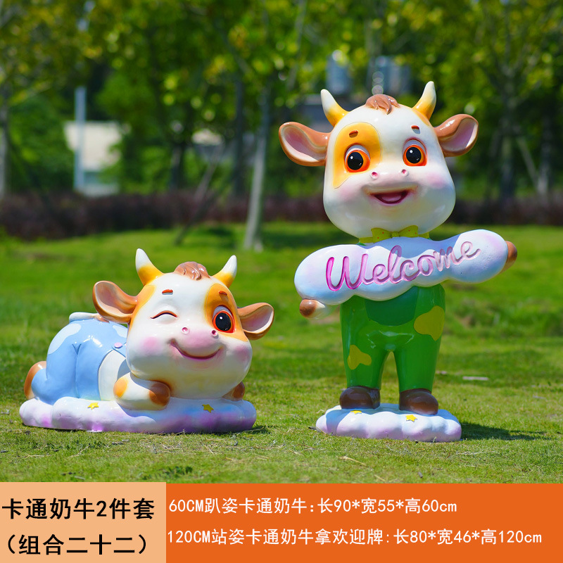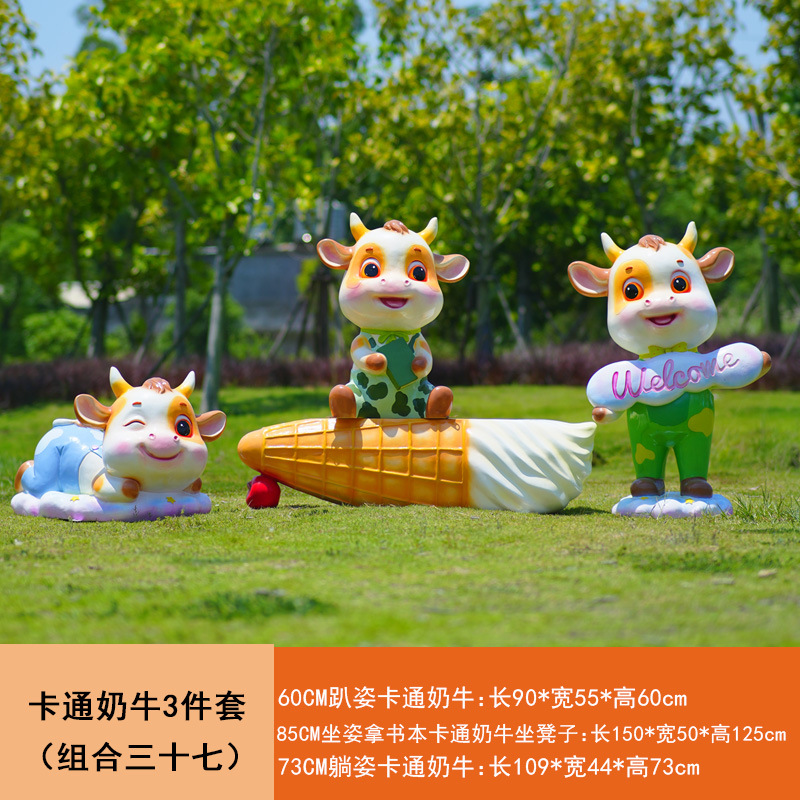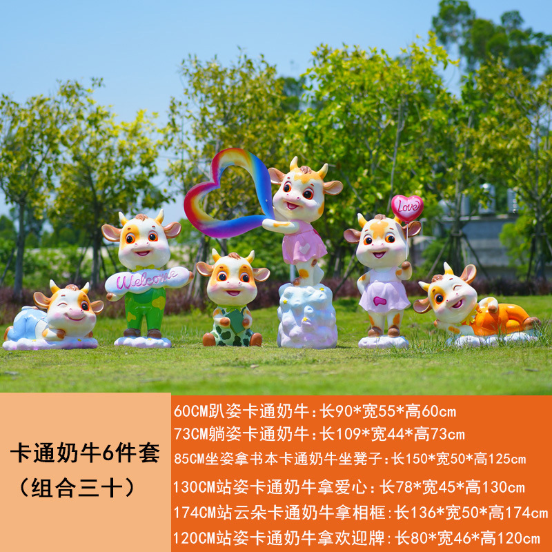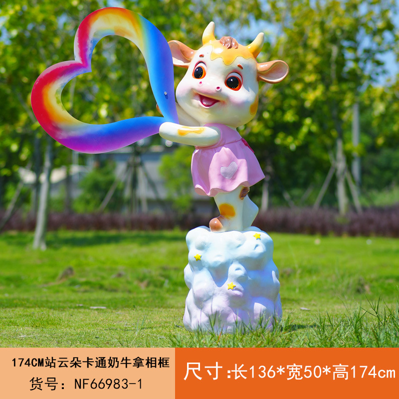 야외 만화 소 조각 시뮬레이션 동물 장식품 인터넷 레드 사진 푸시 카드 공원 경치 지역 잔디 장식스토어 가기
