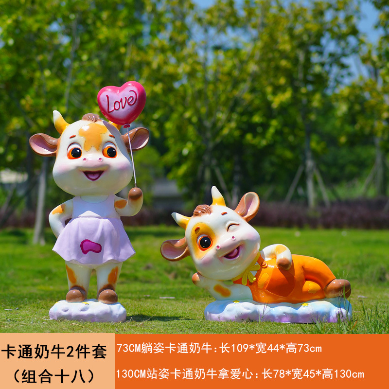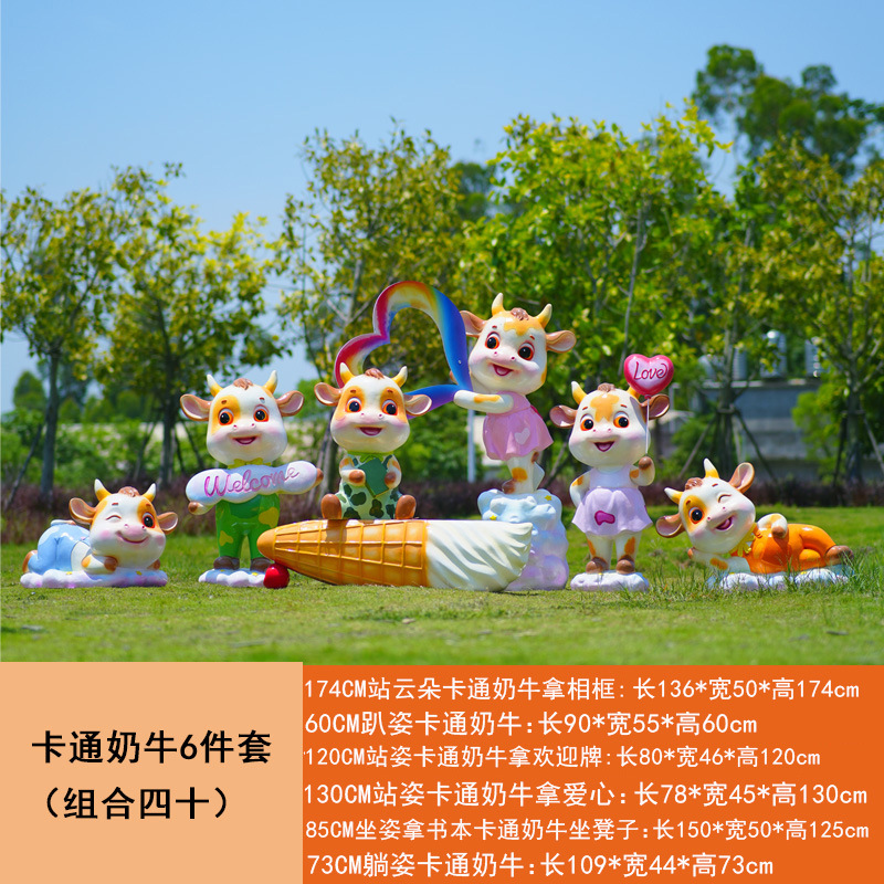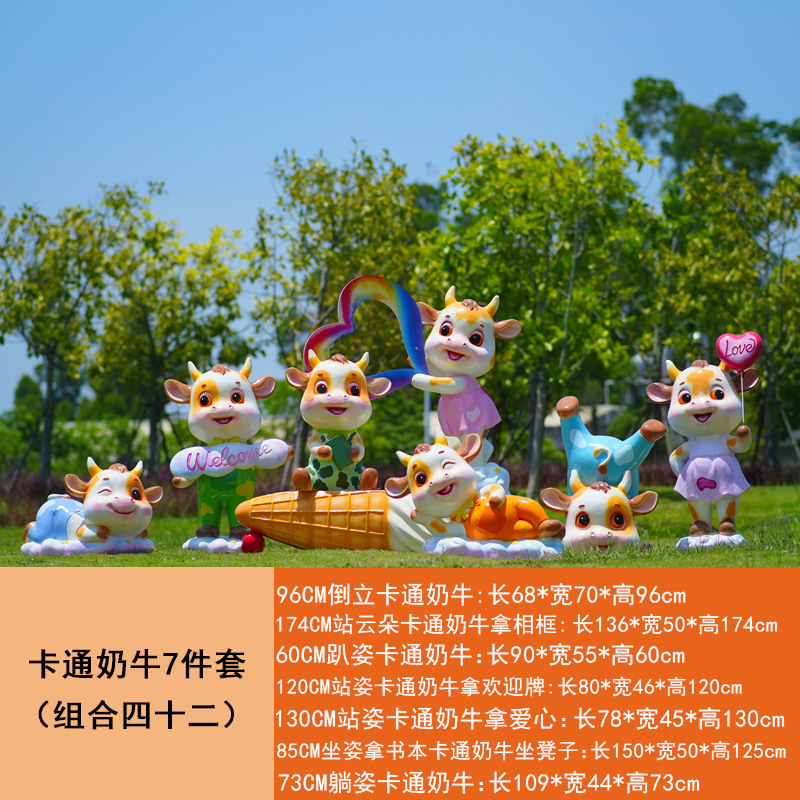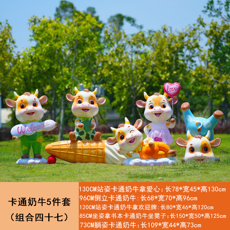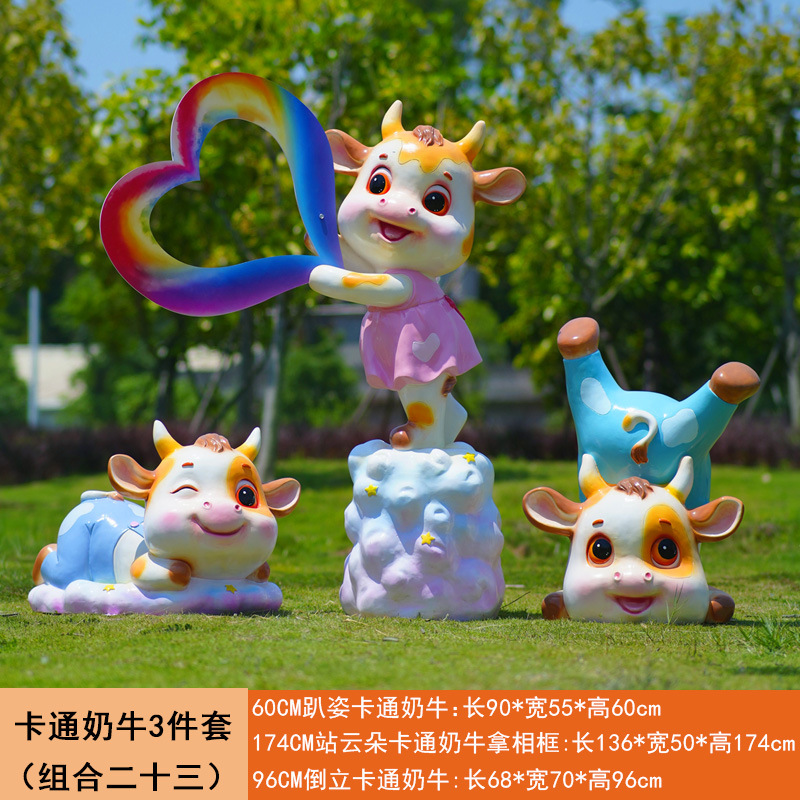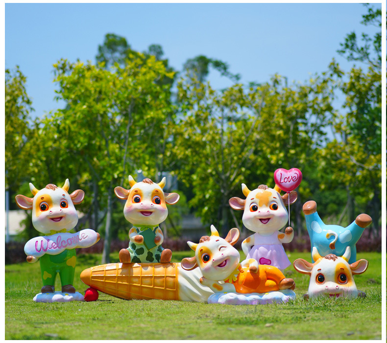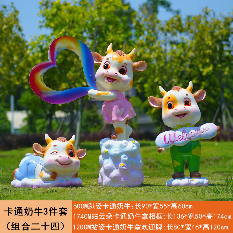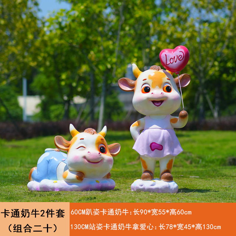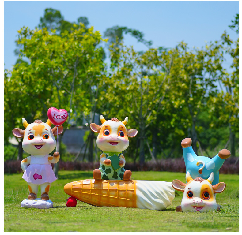 야외 만화 소 조각 시뮬레이션 동물 장식품 인터넷 레드 사진 푸시 카드 공원 경치 지역 잔디 장식스토어 가기