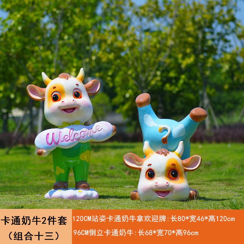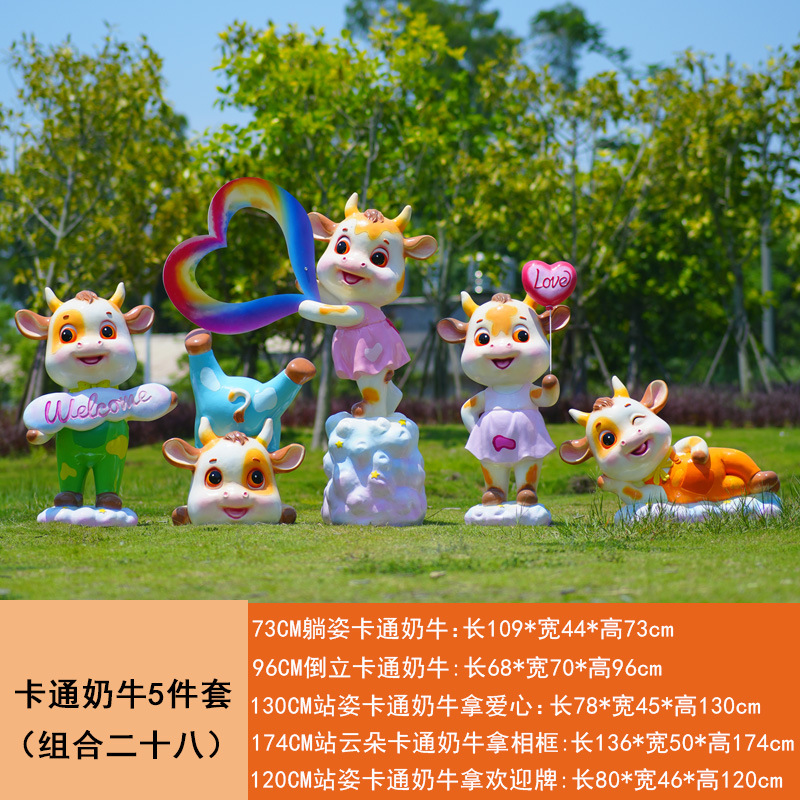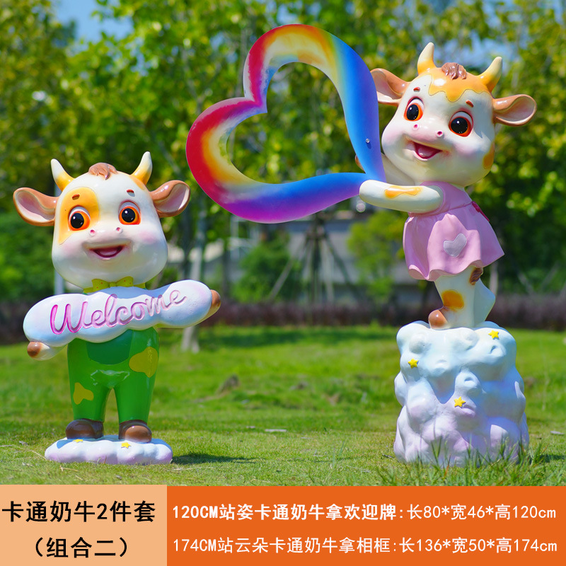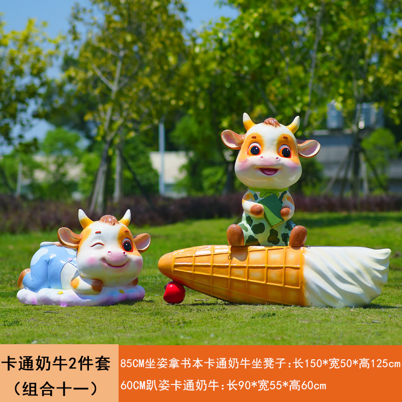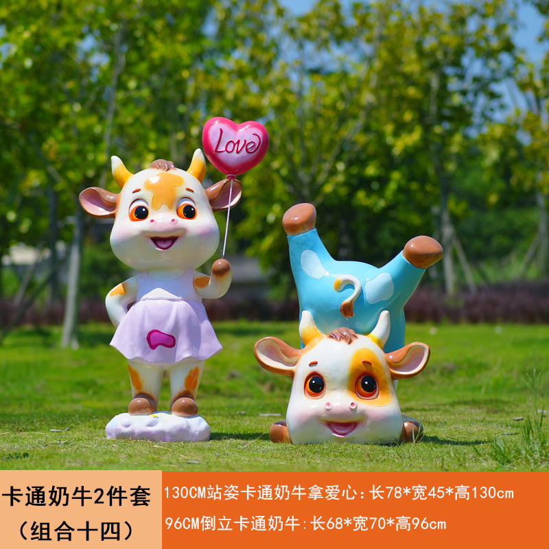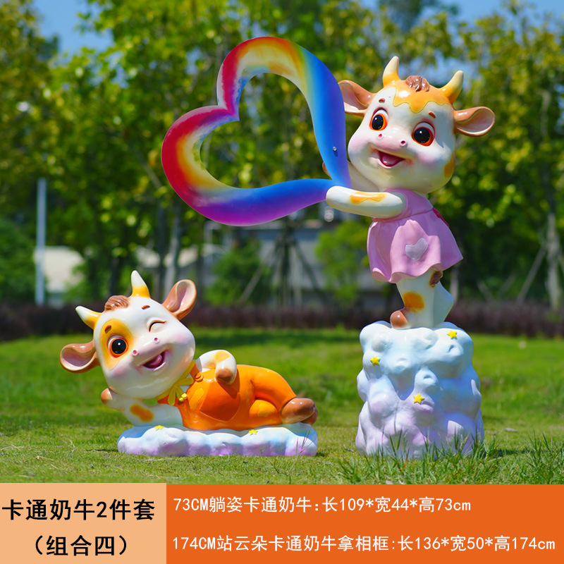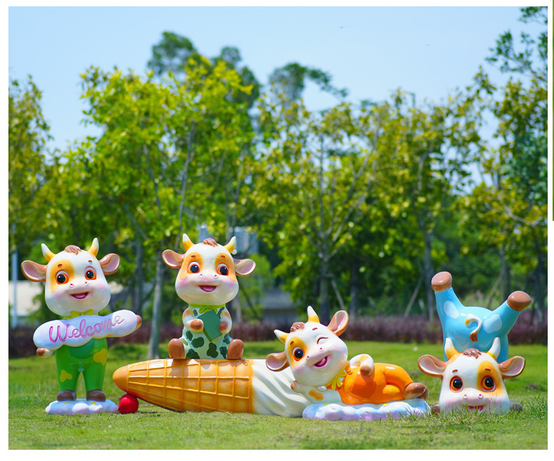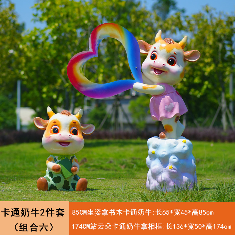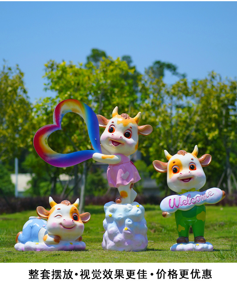 야외 만화 소 조각 시뮬레이션 동물 장식품 인터넷 레드 사진 푸시 카드 공원 경치 지역 잔디 장식스토어 가기