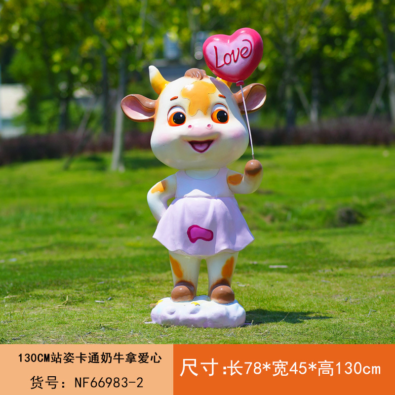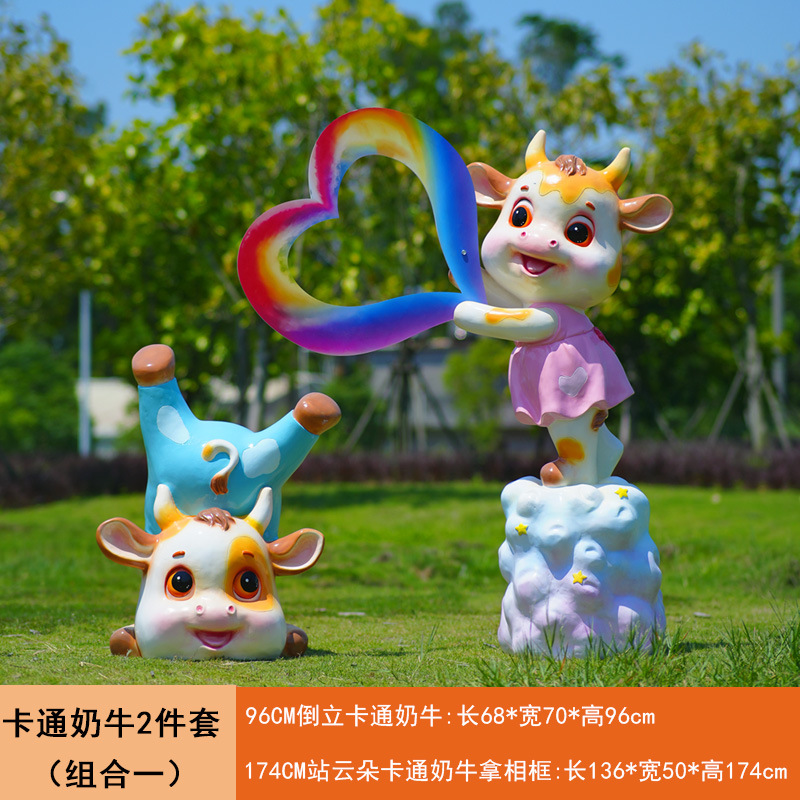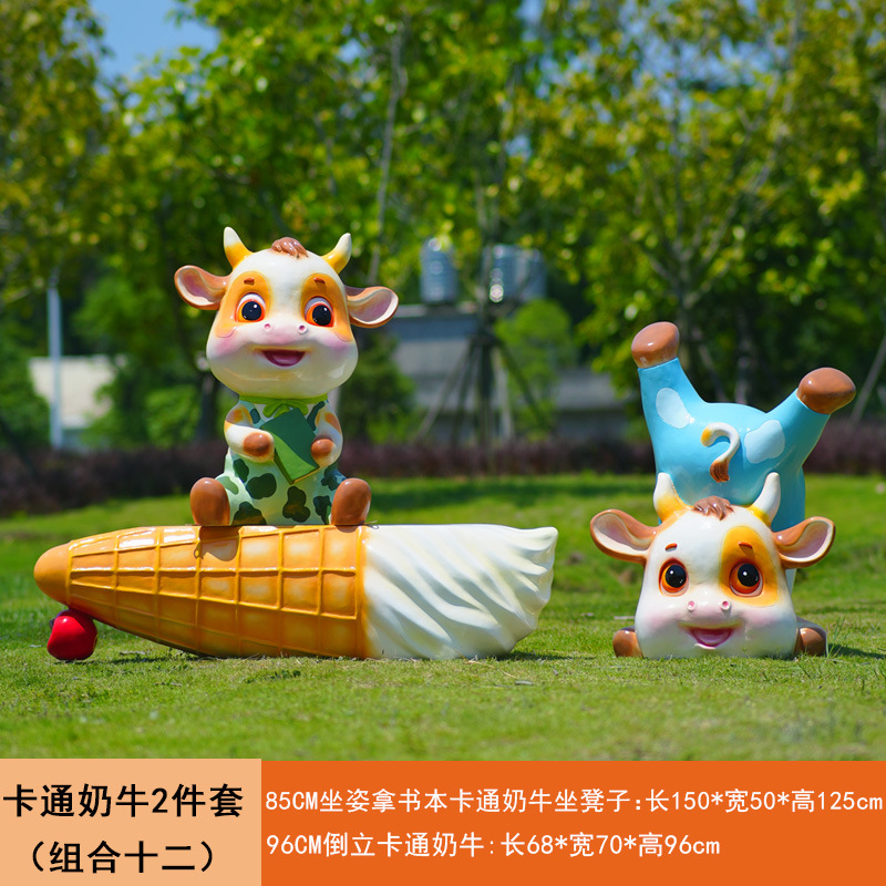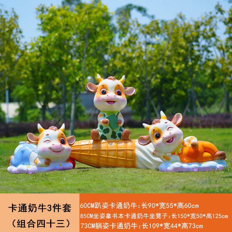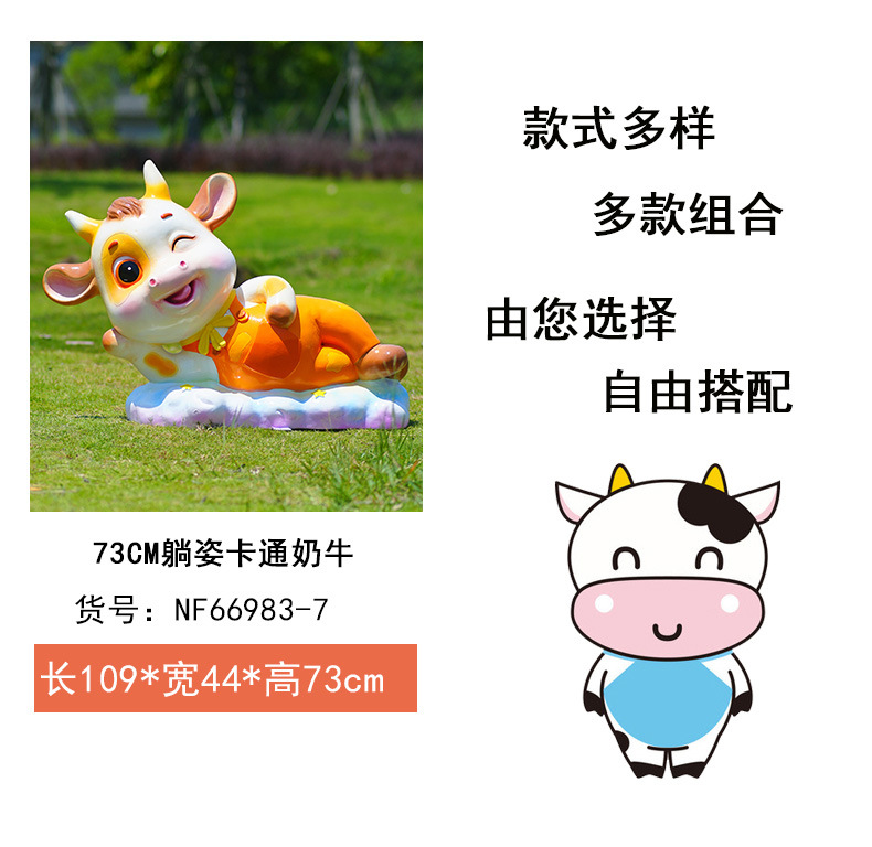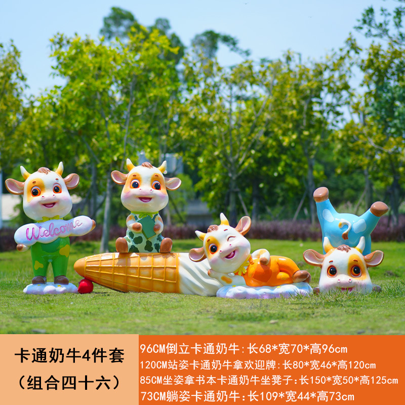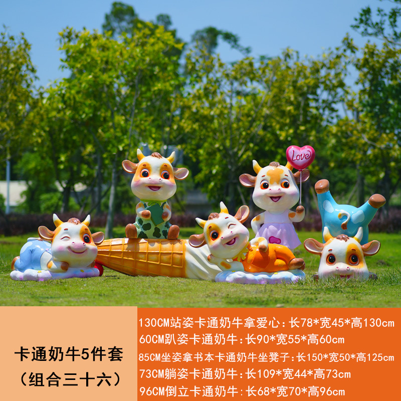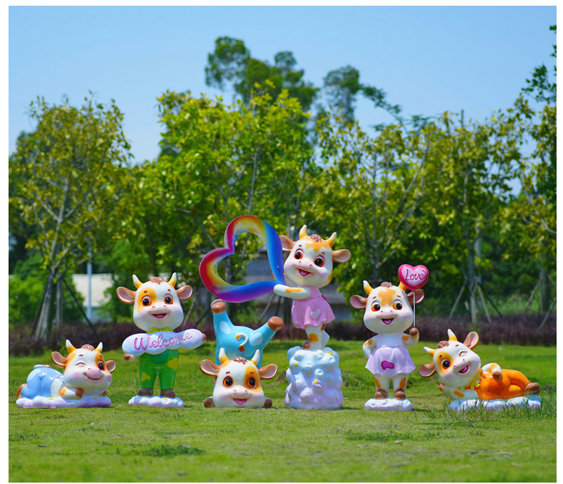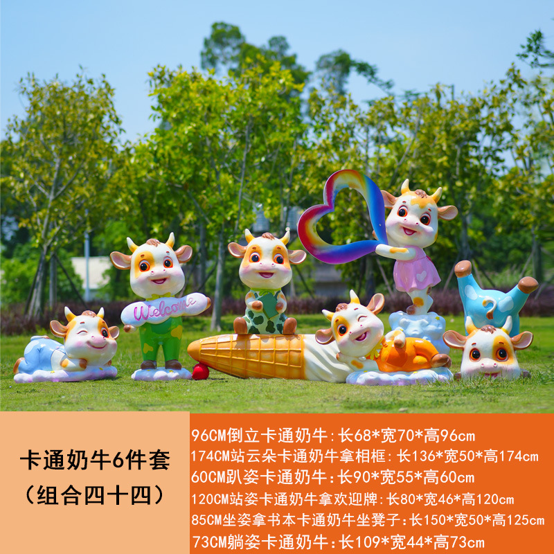 야외 만화 소 조각 시뮬레이션 동물 장식품 인터넷 레드 사진 푸시 카드 공원 경치 지역 잔디 장식스토어 가기