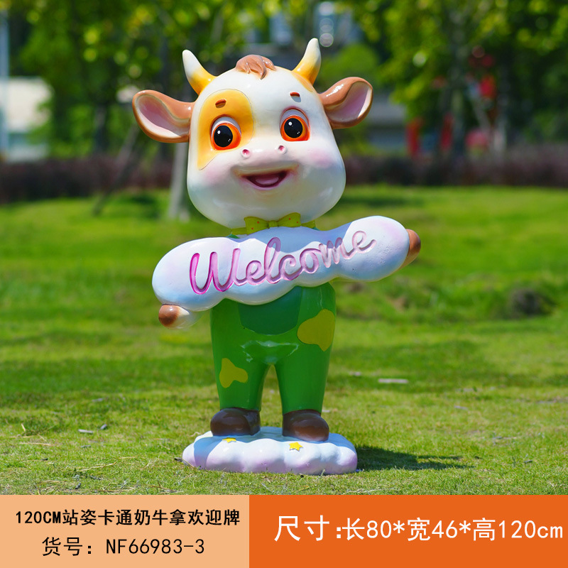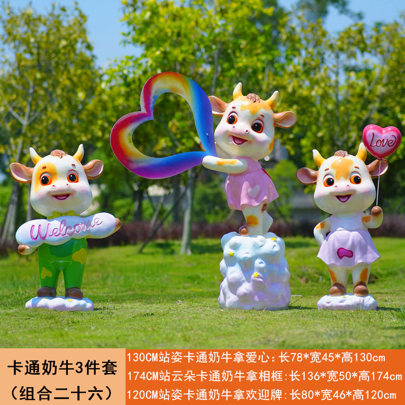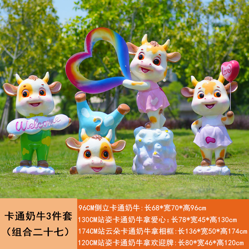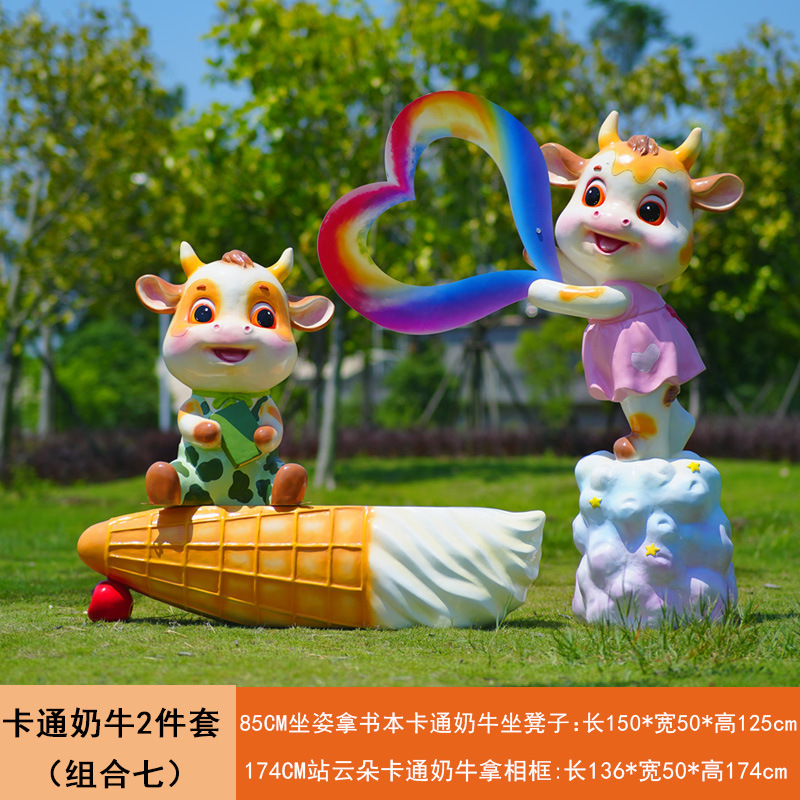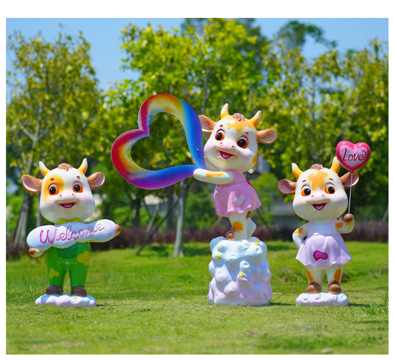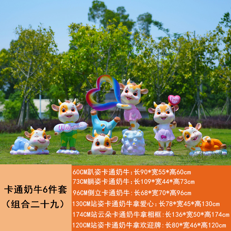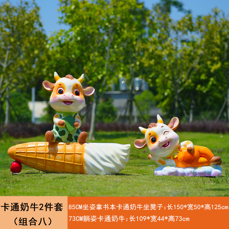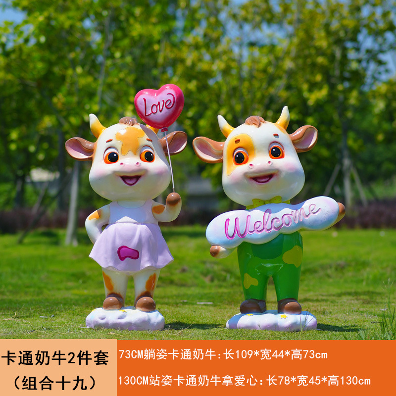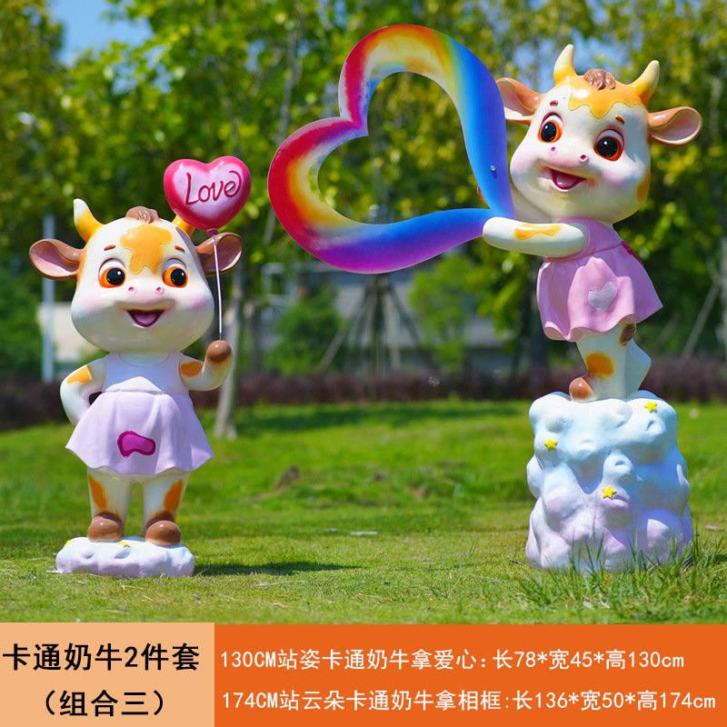 야외 만화 소 조각 시뮬레이션 동물 장식품 인터넷 레드 사진 푸시 카드 공원 경치 지역 잔디 장식스토어 가기