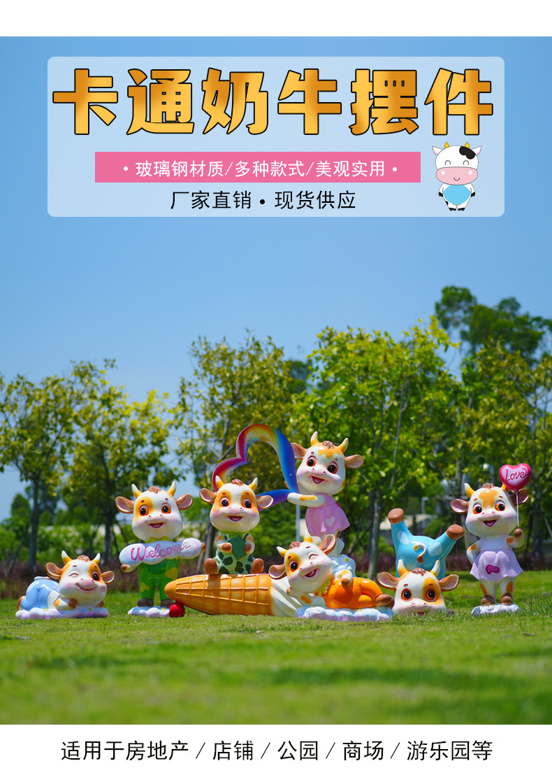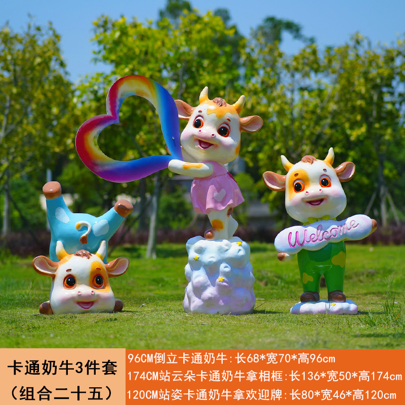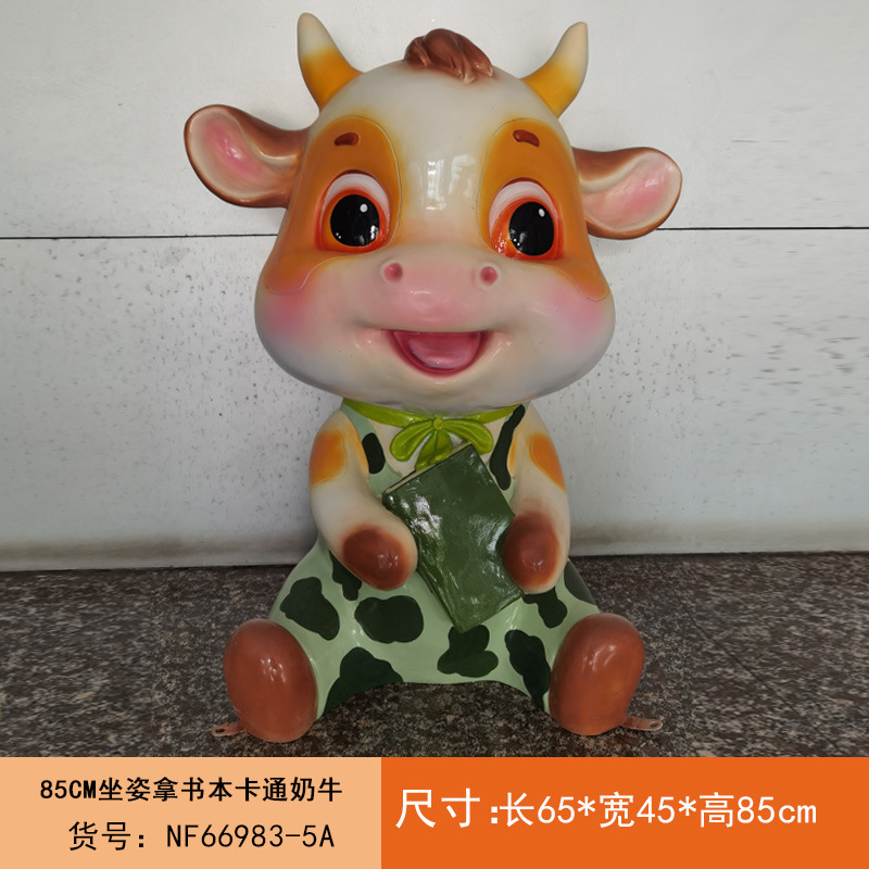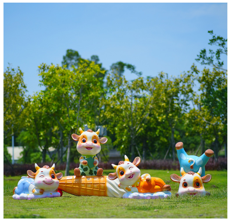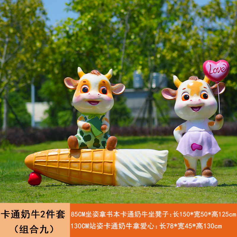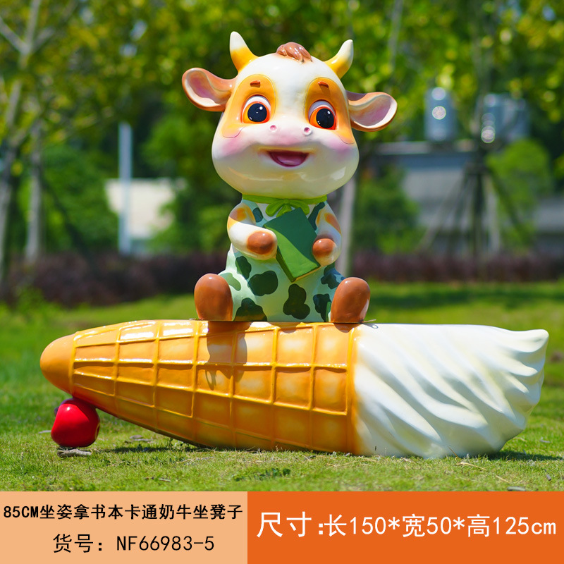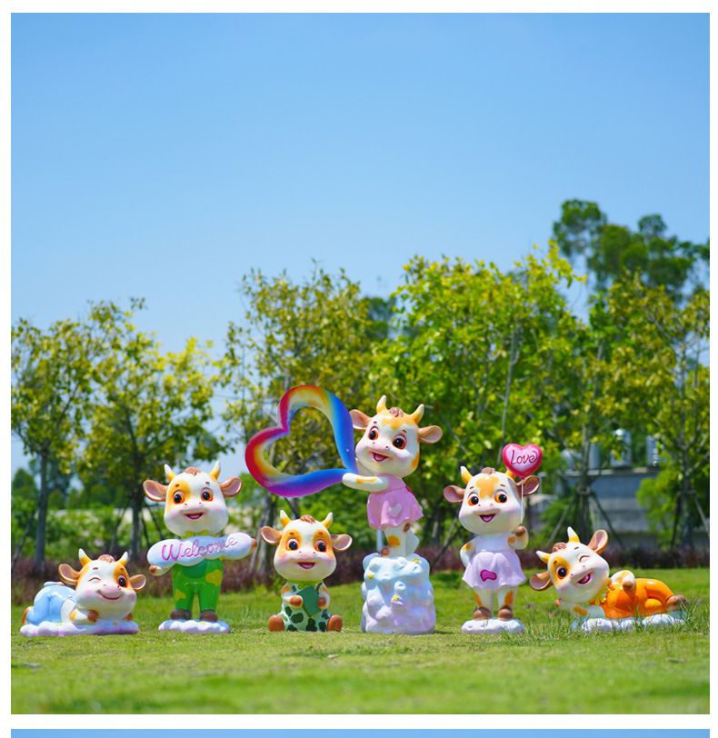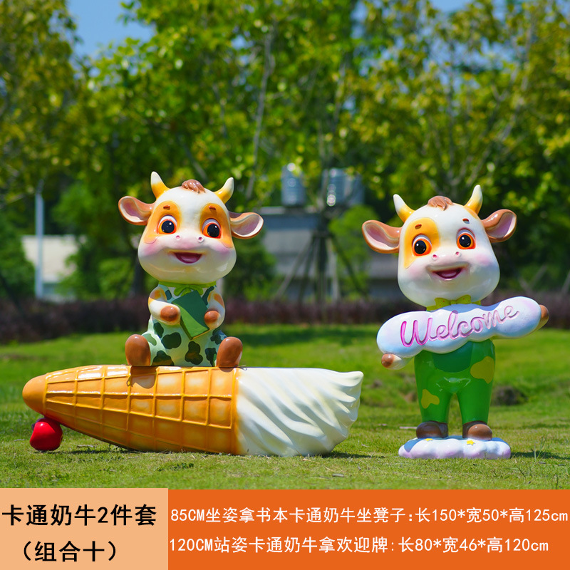 야외 만화 소 조각 시뮬레이션 동물 장식품 인터넷 레드 사진 푸시 카드 공원 경치 지역 잔디 장식스토어 가기