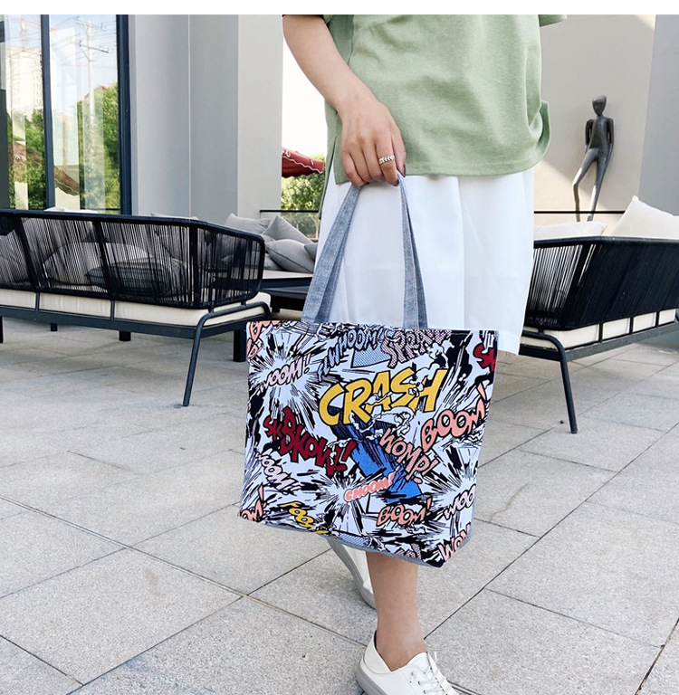 2025 새로운 캔버스 가방 토트 백 예술적 캔버스 가방 도매 대용량 어깨 가방 여성의 인쇄 핸드백스토어 가기