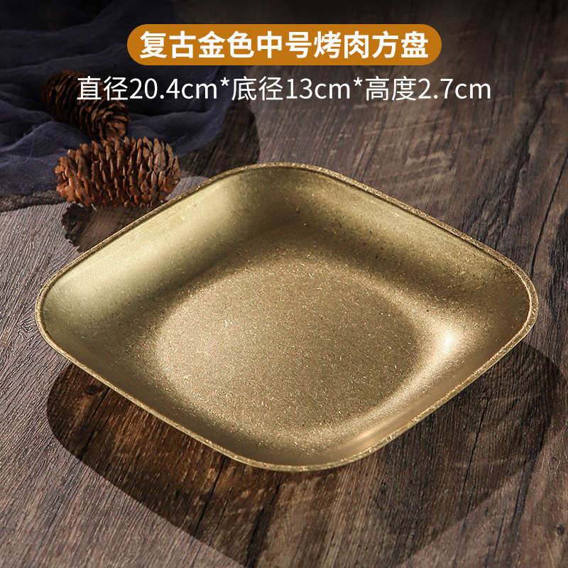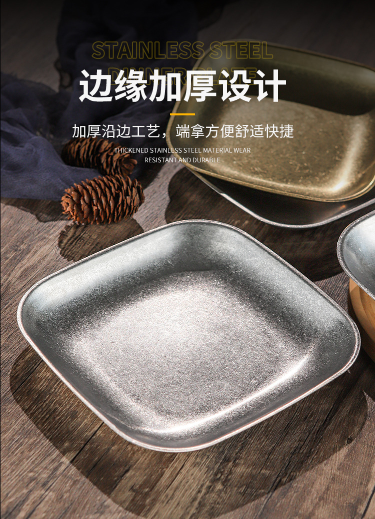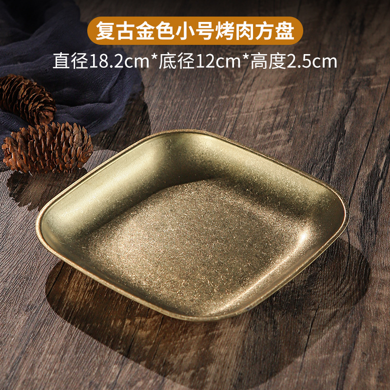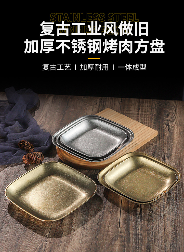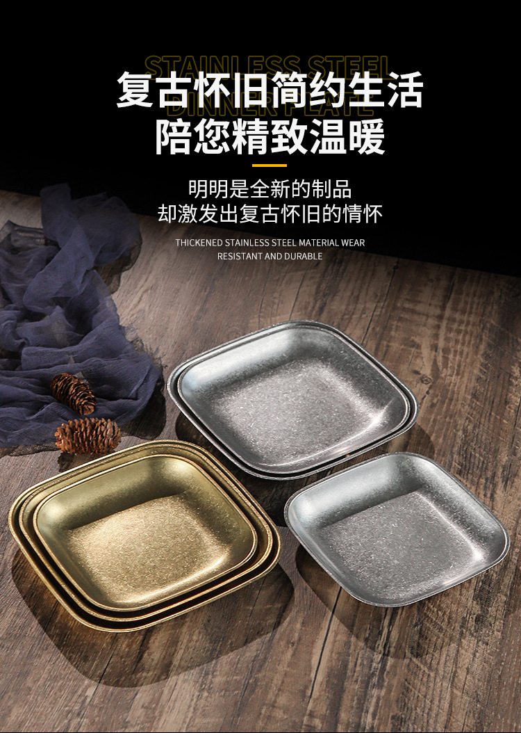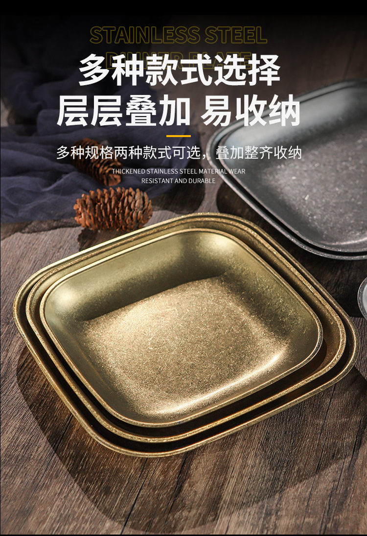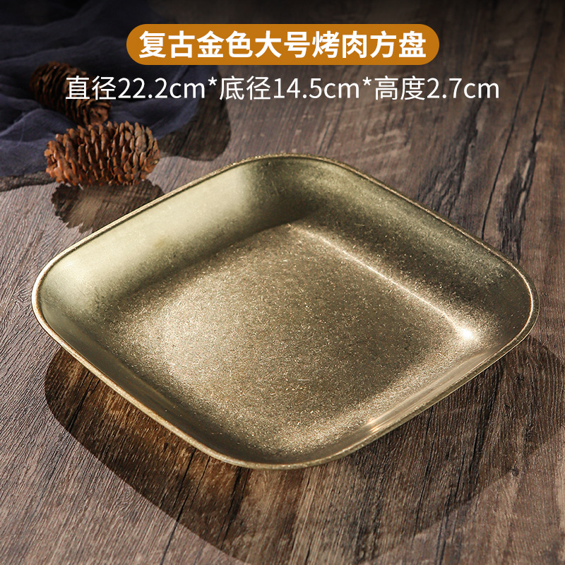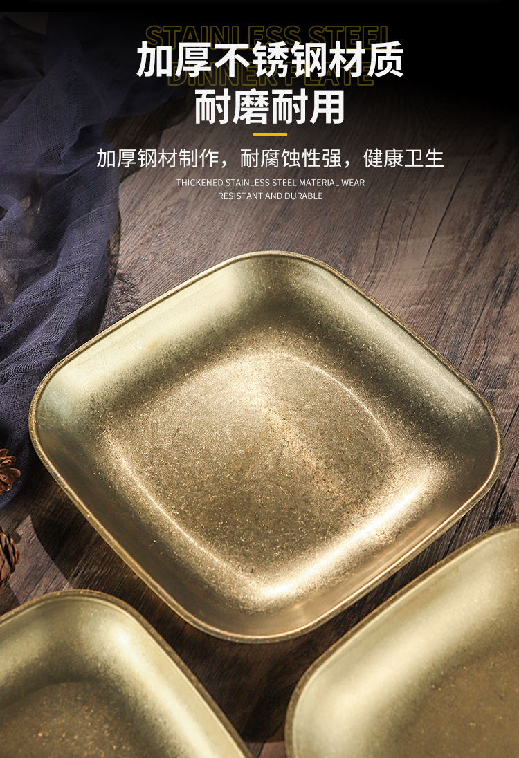 빈티지 스노우 골드 스테인레스 스틸 플레이트 크리 에이 티브 푸드 트레이 얕은 플레이트 스퀘어 스낵 딤섬 플레이트 야외 바베큐 플레이트스토어 가기