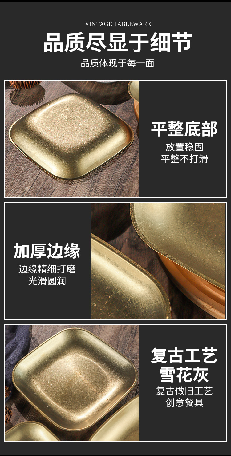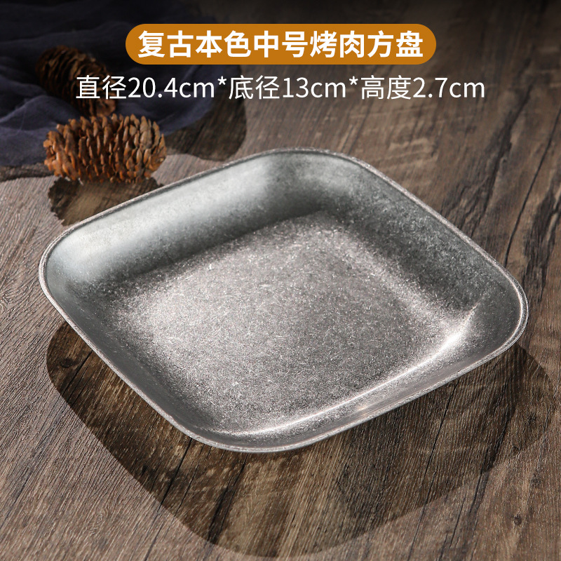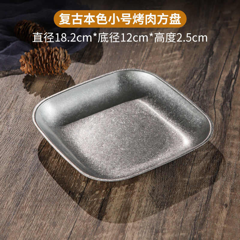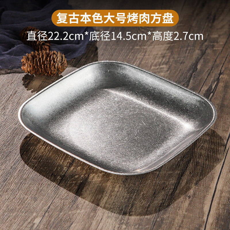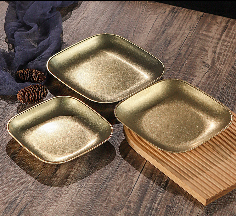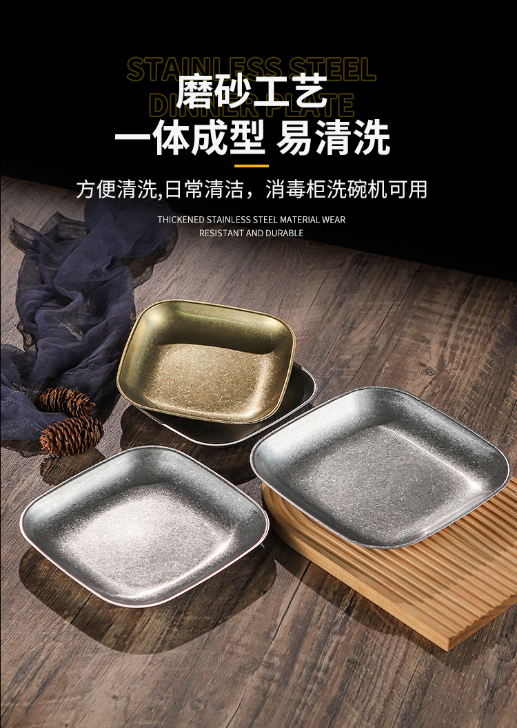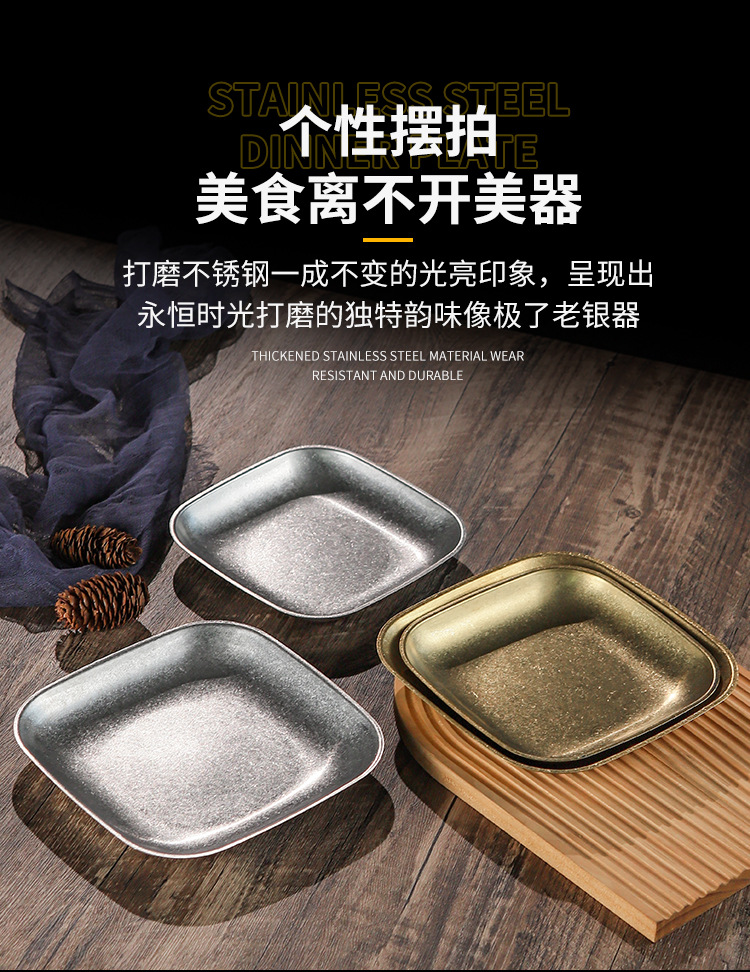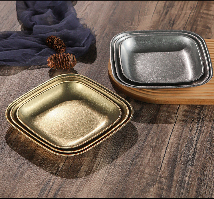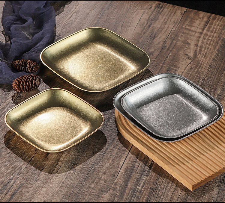 빈티지 스노우 골드 스테인레스 스틸 플레이트 크리 에이 티브 푸드 트레이 얕은 플레이트 스퀘어 스낵 딤섬 플레이트 야외 바베큐 플레이트스토어 가기