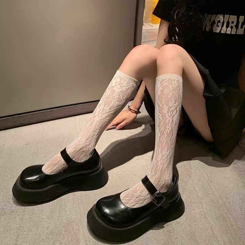 프렌치 레이스 양말, 키높이 효과, 레이스 양말, 섹시한 가죽 신발, jk 양말, 여성 맞춤형 중간 길이 양말, 캐주얼하고 다용도스토어 가기