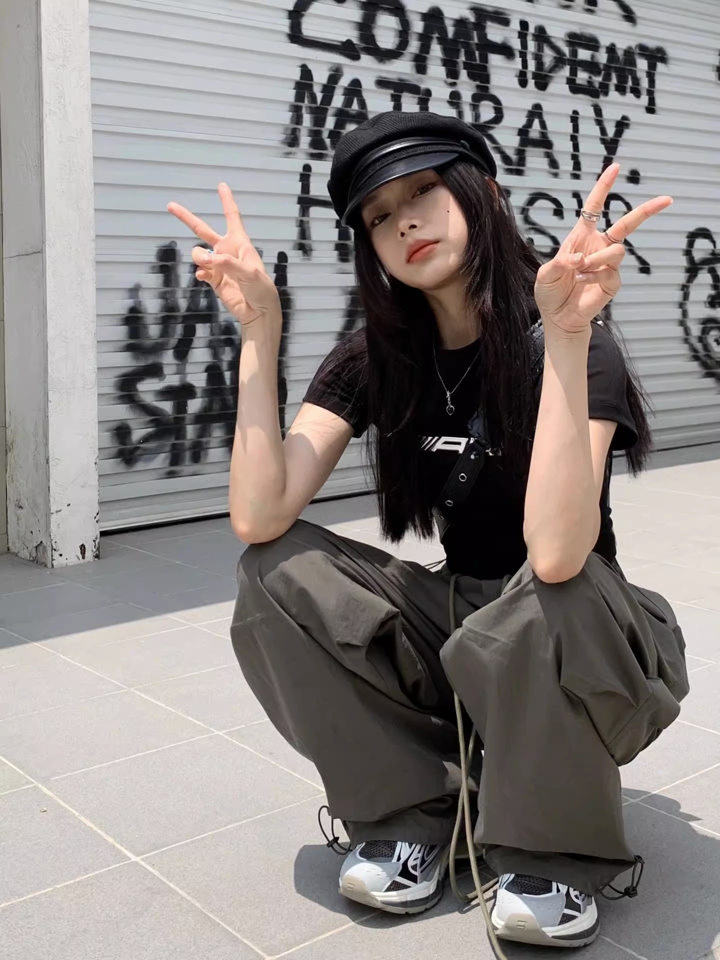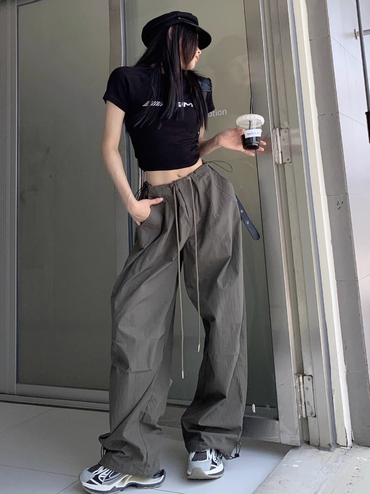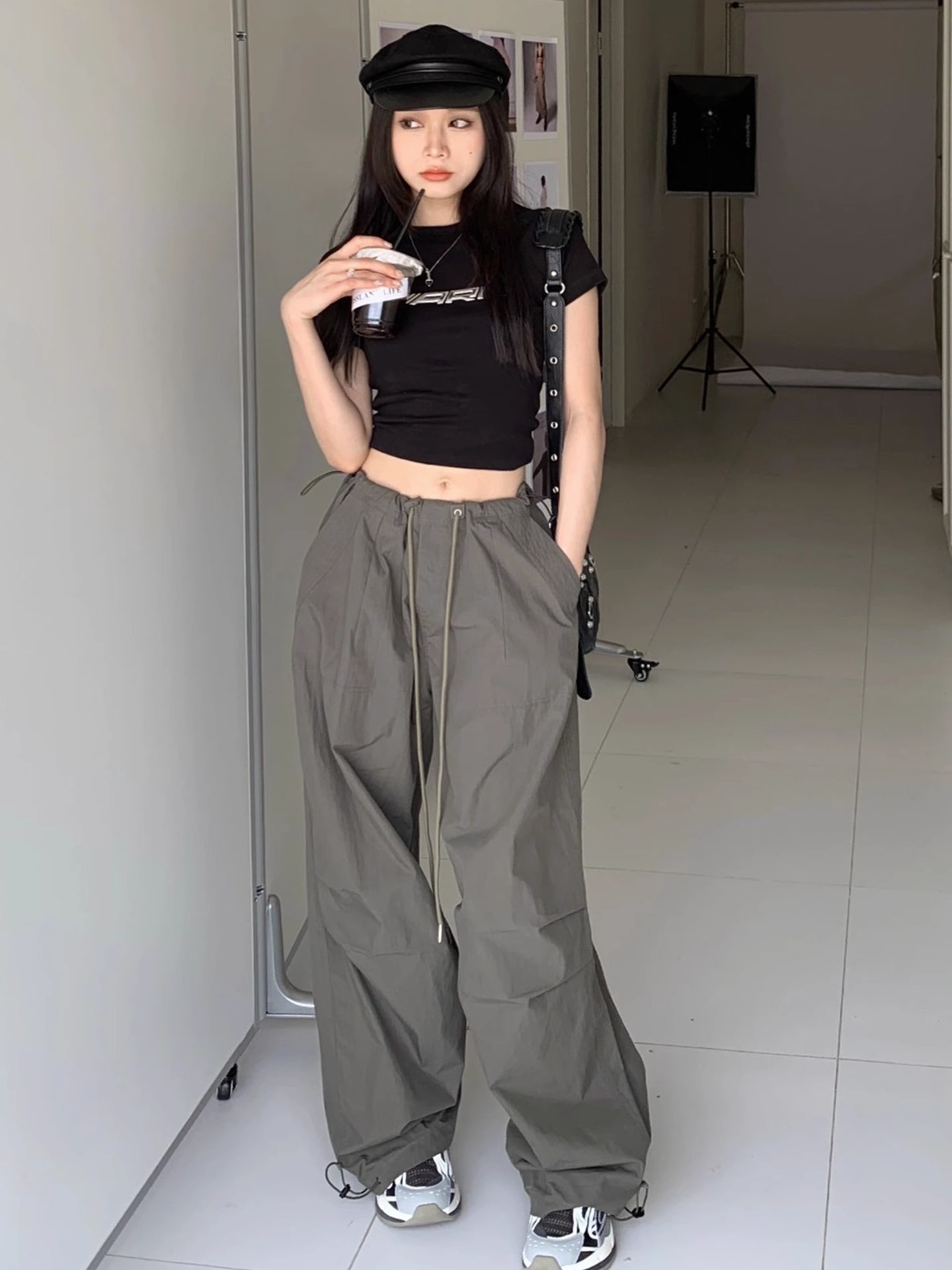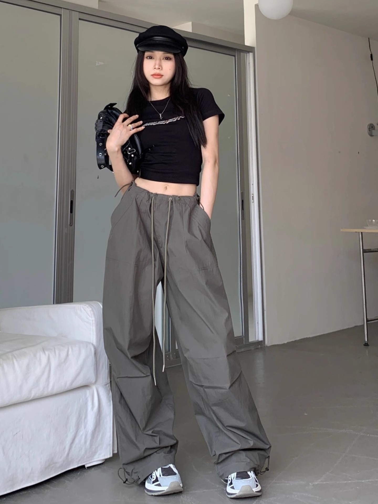 미국식 하이 스트리트 힙합 여성용 여름 새로운 주름 낙하산 바지 슬림 처짐 넓은 다리 바닥 바지스토어 가기