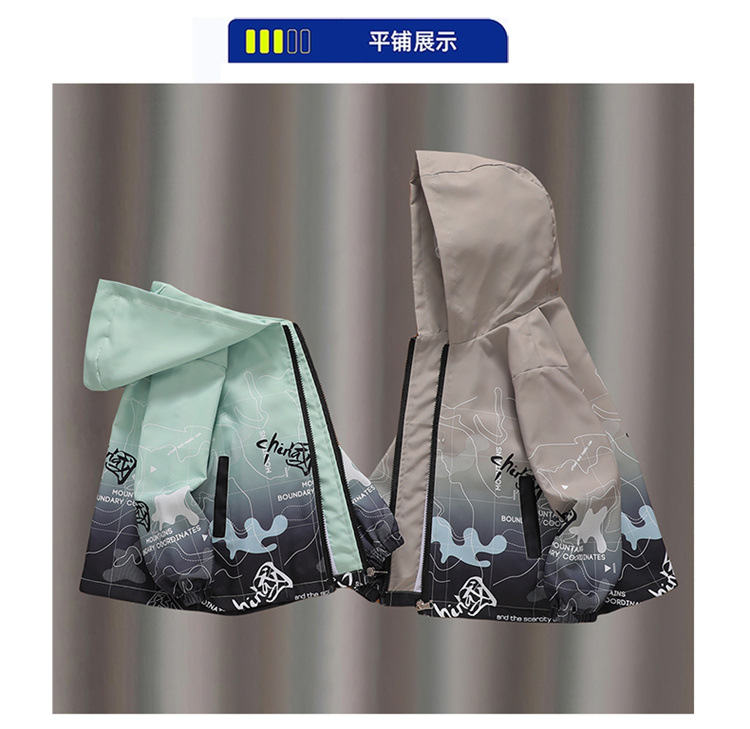 소년 봄 코트 2025 새로운 도착 중대형 어린이 봄과 가을 최고 잘 생긴 소년 거리 튀김 후드 패셔너블 코트스토어 가기