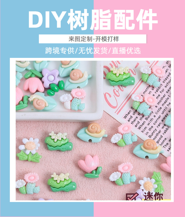 미니 어린이 재미 튤립 꽃 크림 접착제 DIY 수제 머리핀 냉장고 스티커 소재 가방 수지 액세서리 도매스토어 가기