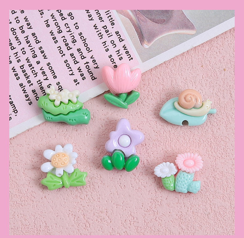 미니 어린이 재미 튤립 꽃 크림 접착제 DIY 수제 머리핀 냉장고 스티커 소재 가방 수지 액세서리 도매