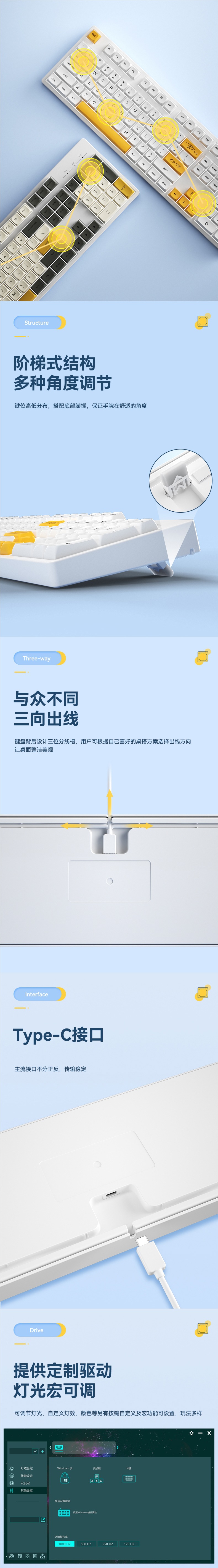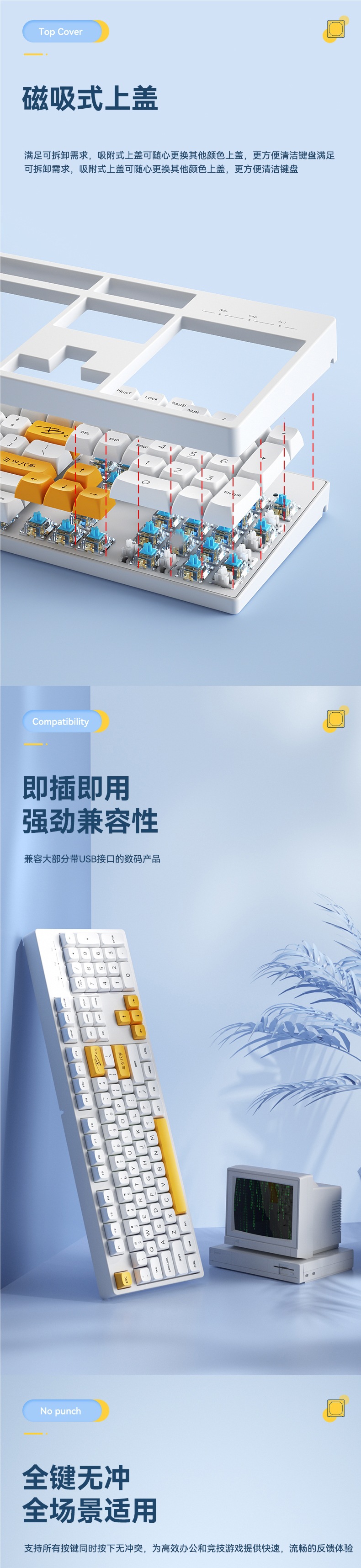 • Gaote Peach-Silent Axis-F104 흰색 배경 피카츄 MOA 기계식 키보드