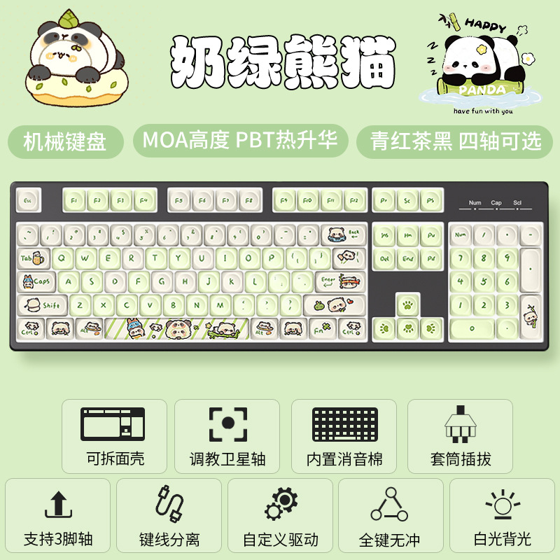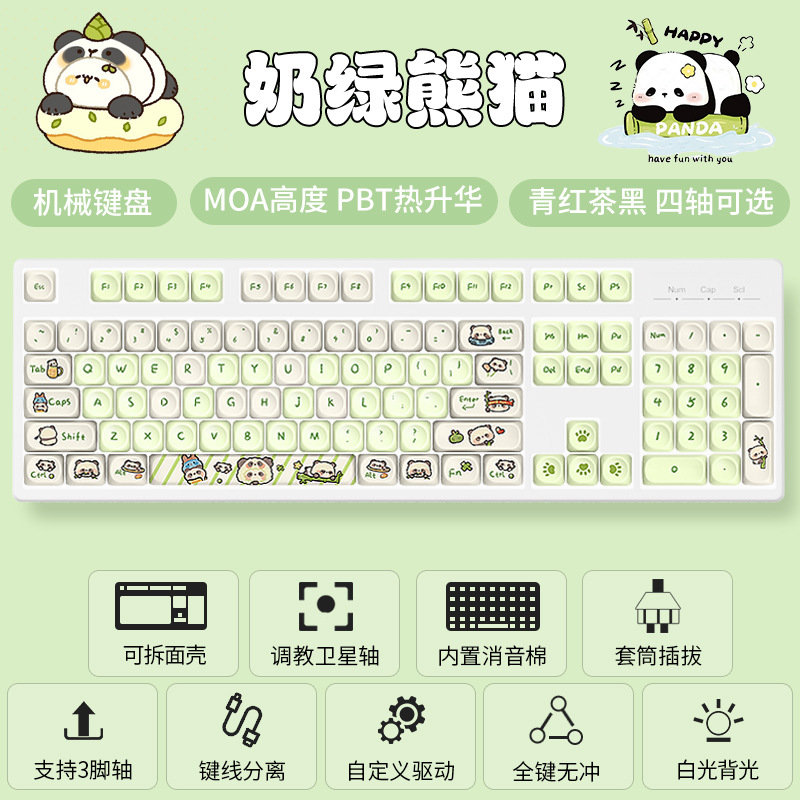 • Gaote Peach-Silent Axis-F104 검정색 배경 우유 녹색 팬더 기계식 키보드