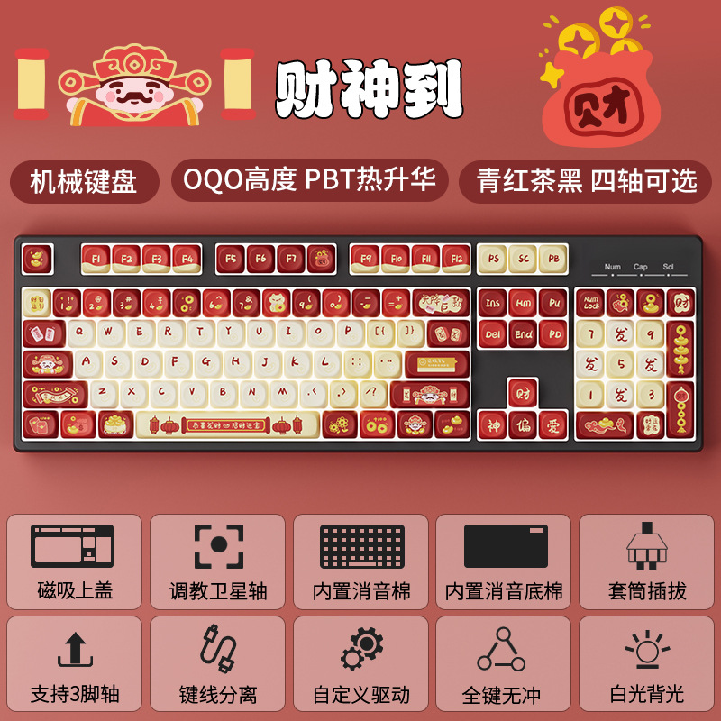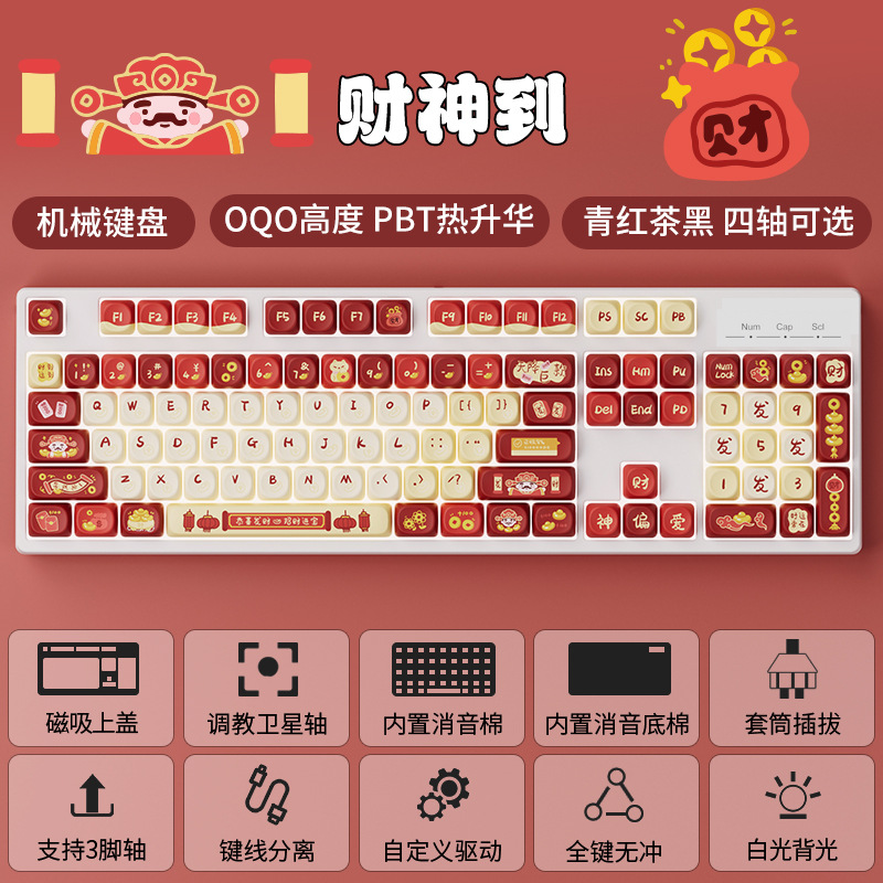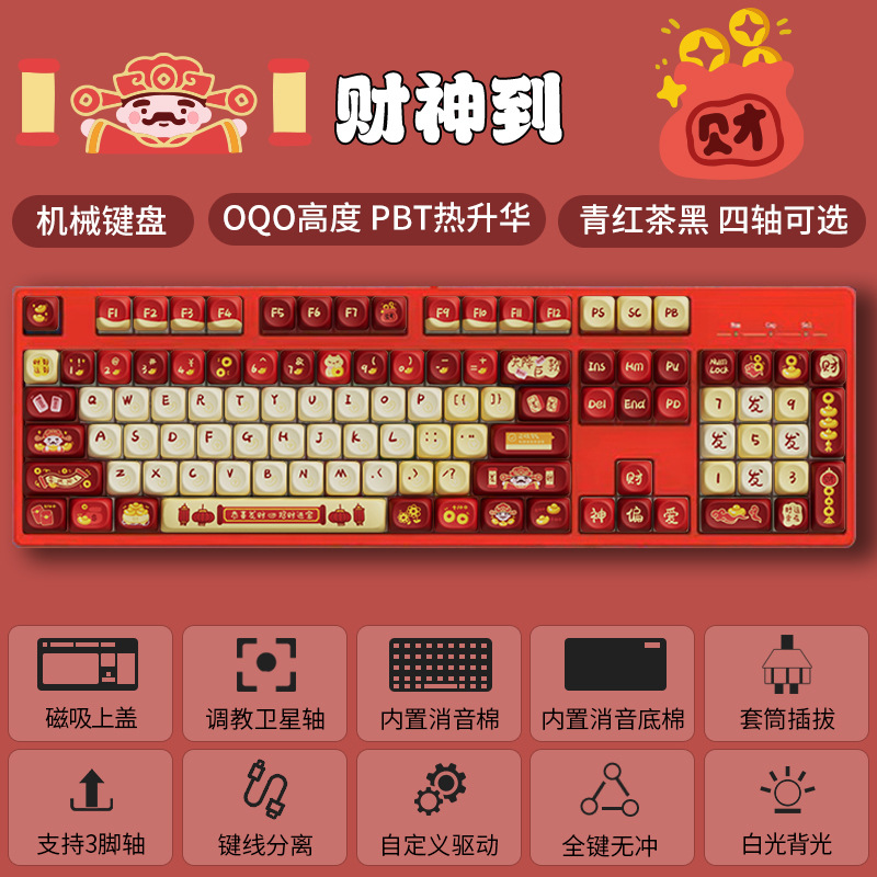 • Gaote Peach-Silent Axis-F104 빨간색 상단 덮개 God of Wealth 기계식 키보드
