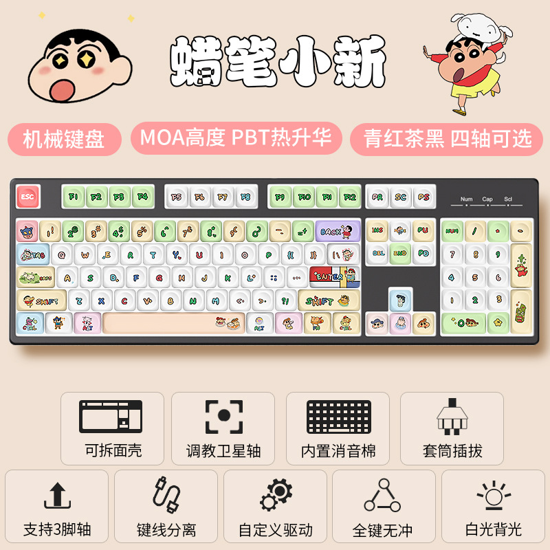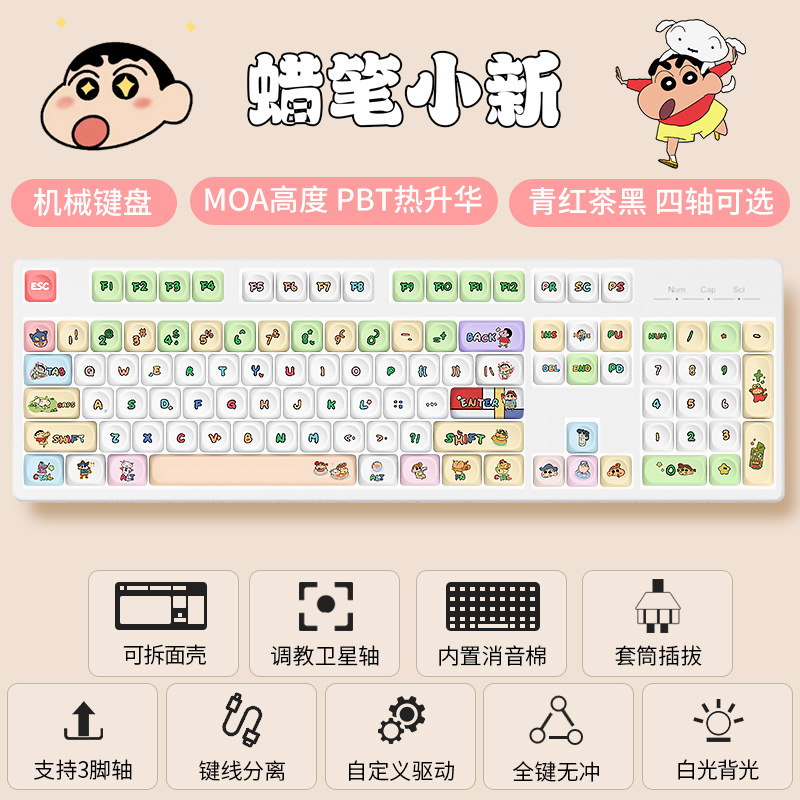 • Gaote Peach-Silent Axis-F104 흰색 배경 Crayon Shin-chan MOA 기계식 키보드