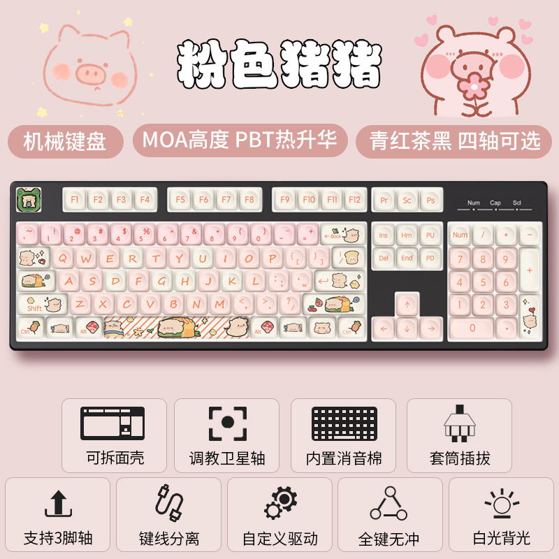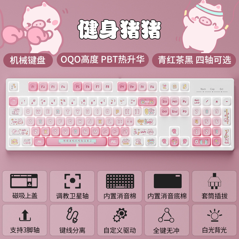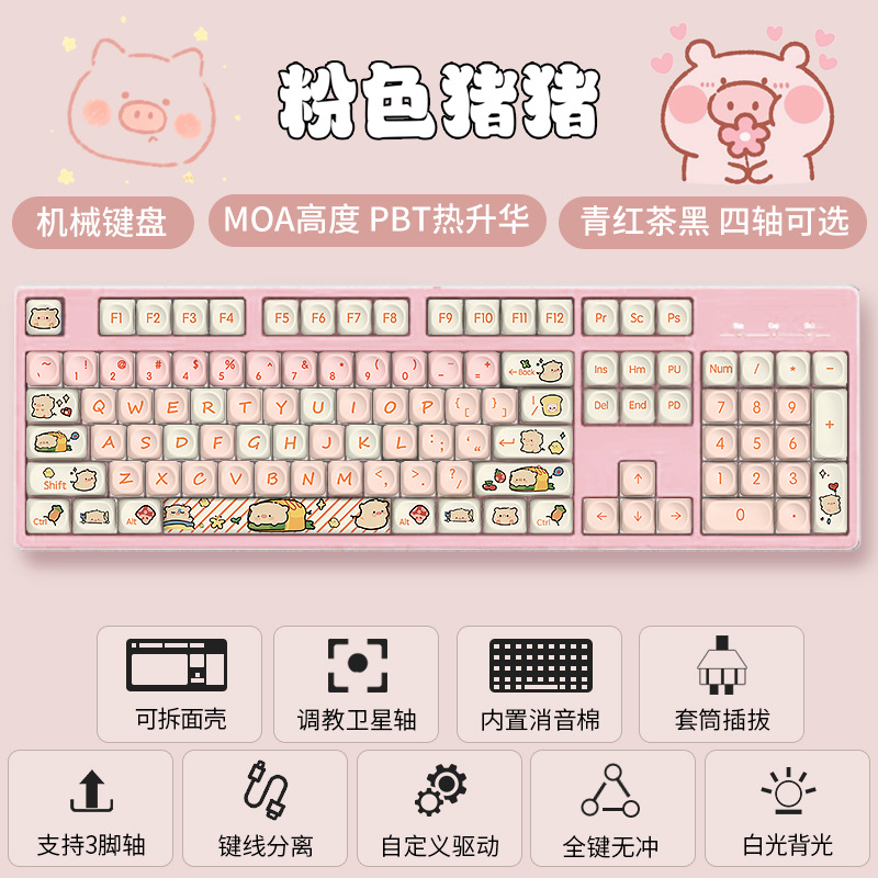 • Gaote Peach-Silent Axis-F104 핑크 커버 핑크 돼지 기계식 키보드