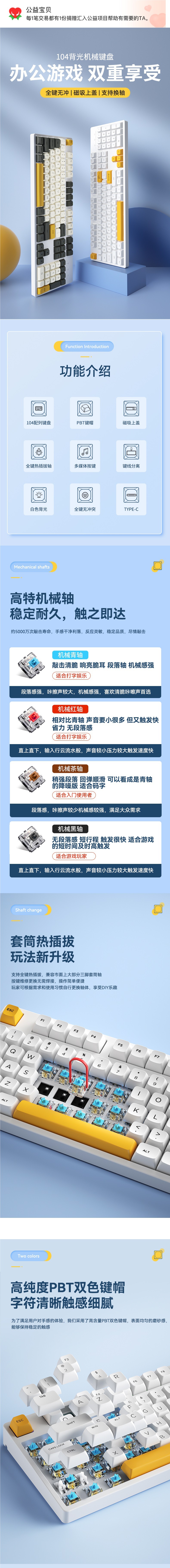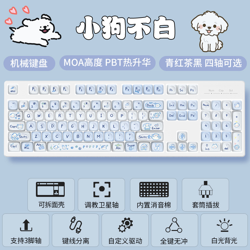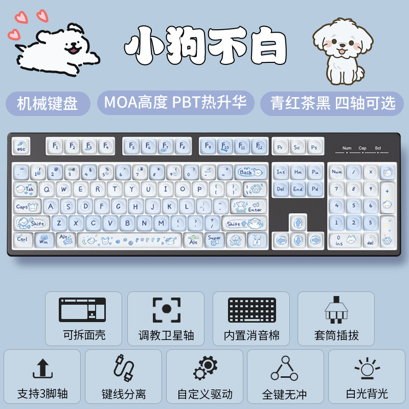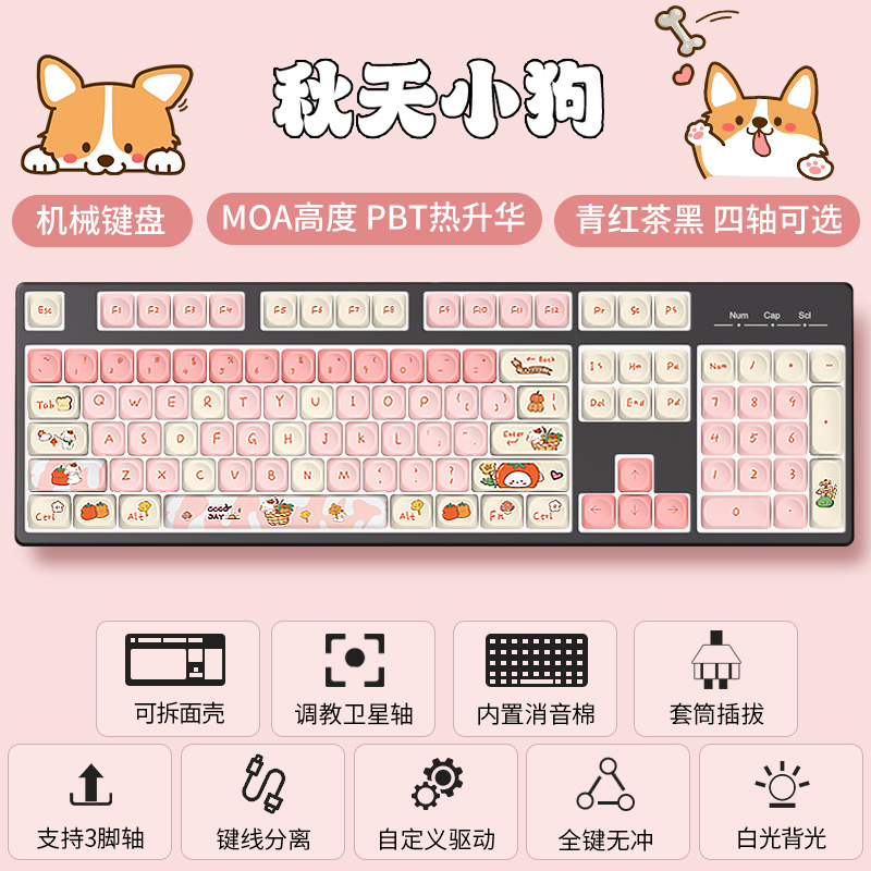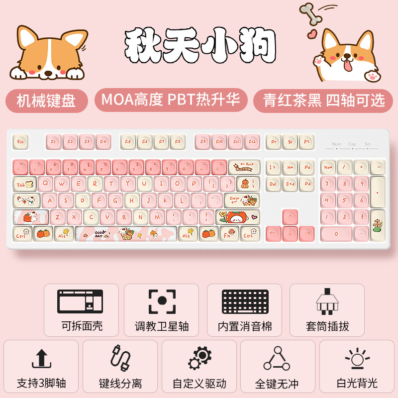• Gaote Peach-Silent Axis-F104 흰색 배경 가을 강아지 기계식 키보드