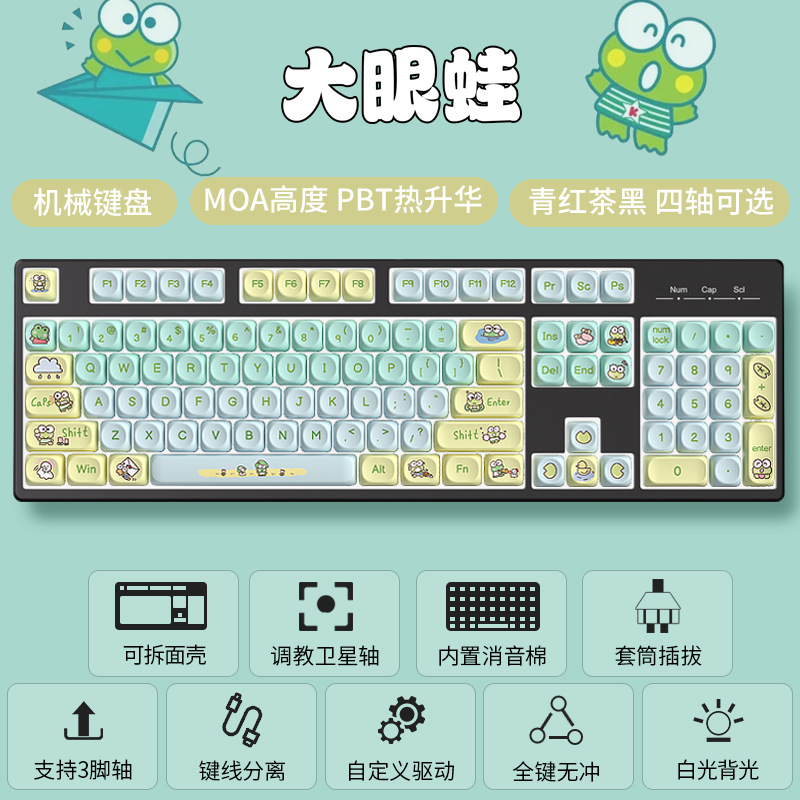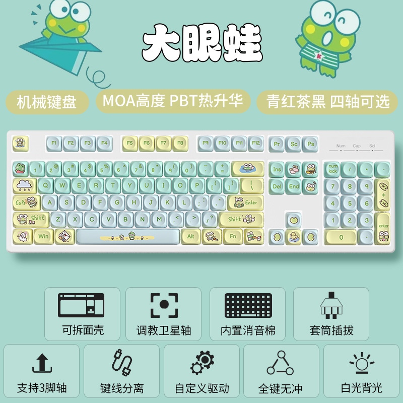 • 검정색 축-F104 흰색 배경 큰 눈 개구리 기계식 키보드