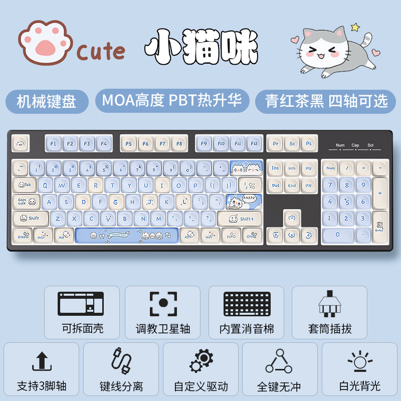 • 검정색 축-F104 흰색 배경 새끼 고양이 기계식 키보드