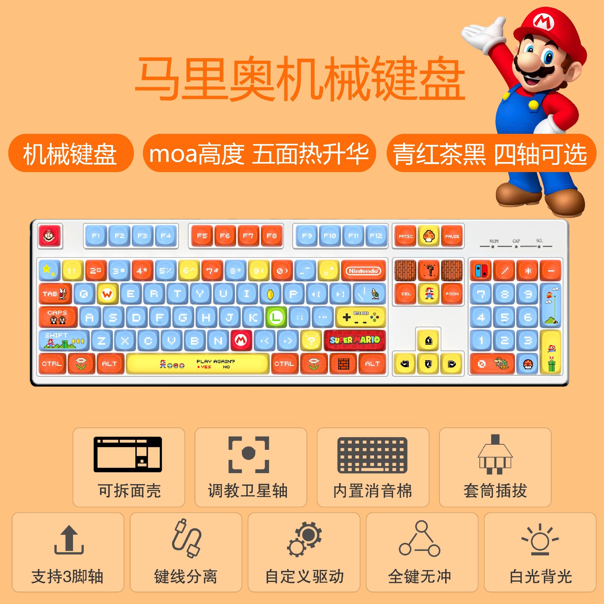 • 검정색 축-F104 흰색 배경 마리오 MOA 기계식 키보드