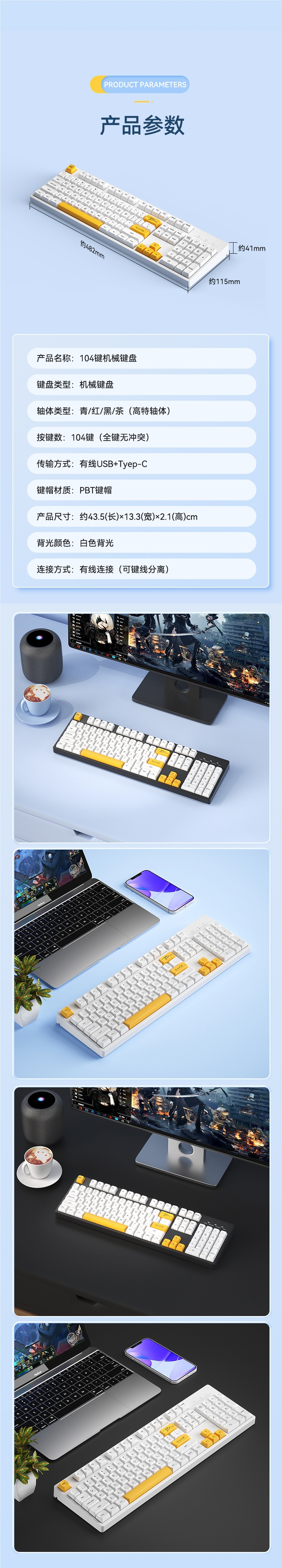 • Gaote Peach-Silent Axis-F104 흰색 배경 밀크 그린 팬더 기계식 키보드