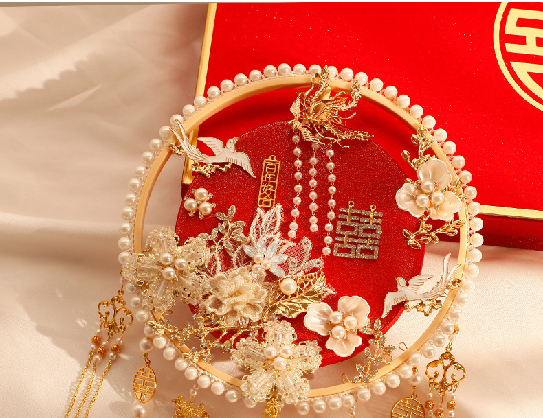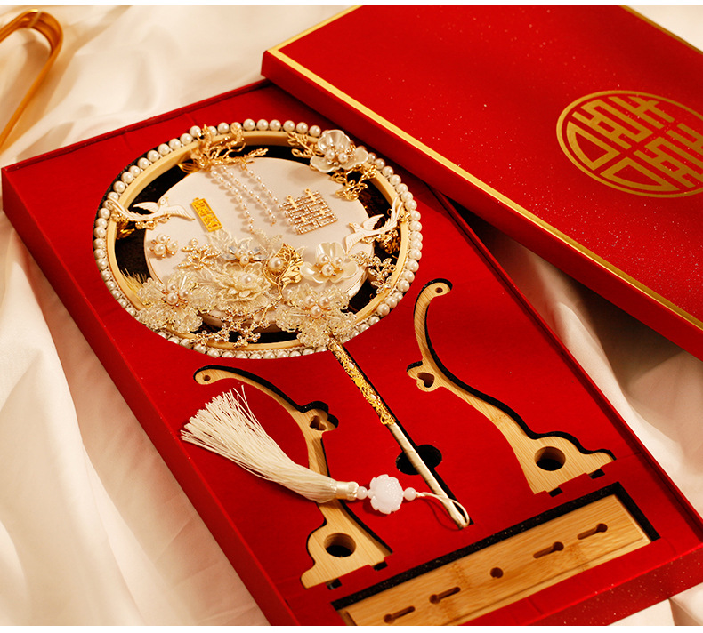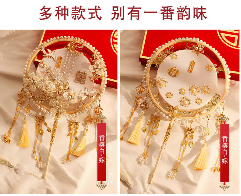 샴페인 컬러 그룹 팬 신부 웨딩 DIY 소재 패키지 Xi 팬 Xiuhe 원피스 웨딩 센스 커버 팬
