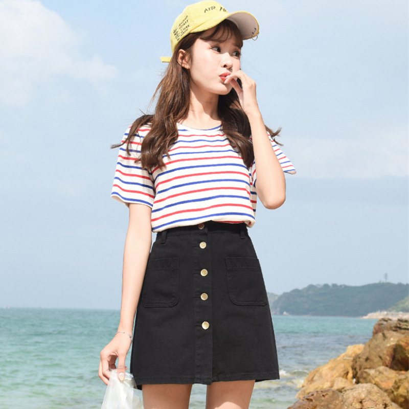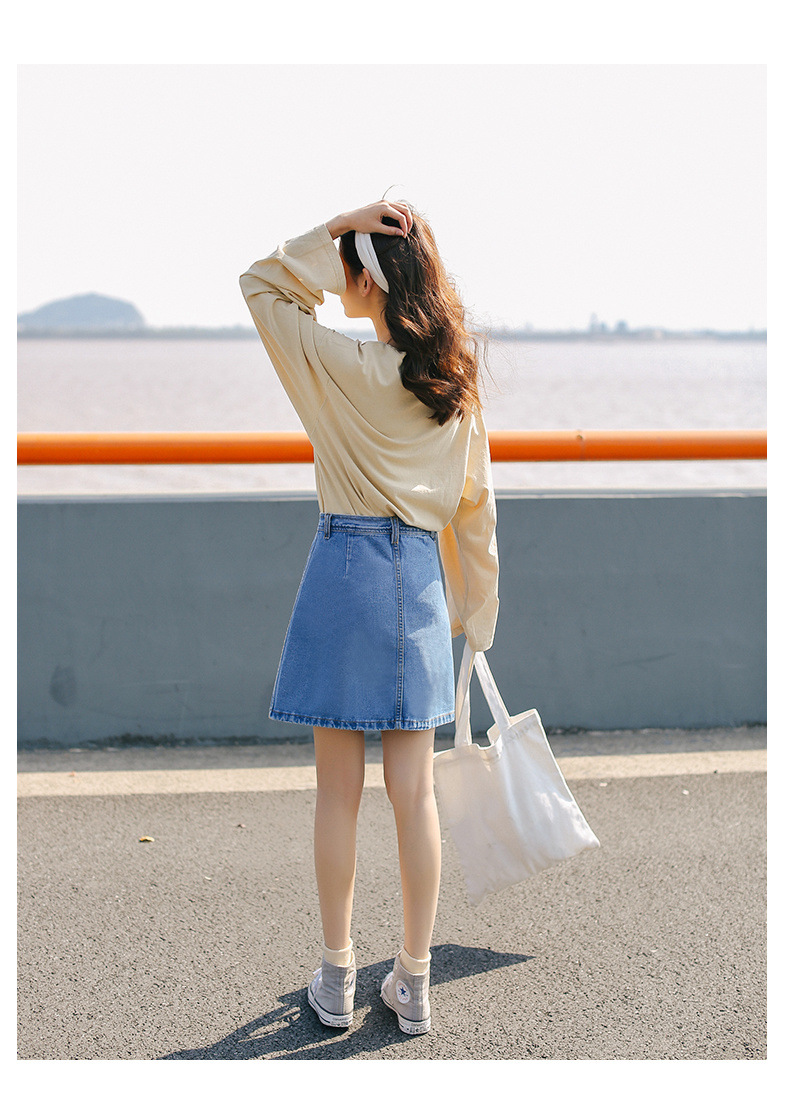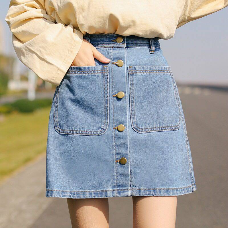 데님 치마 여자 2025 봄과 여름 신학생 하이웨이스트 한국 A 라인 스커트 인스타그램 원스텝 힙합 스커트스토어 가기