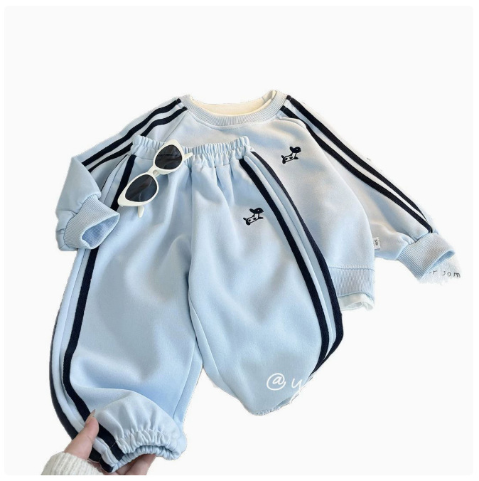 2025 면 어린이 땀 세트 봄과 가을 긴 소매 바지 소년 소녀 서양식 스포츠 투피스 세트