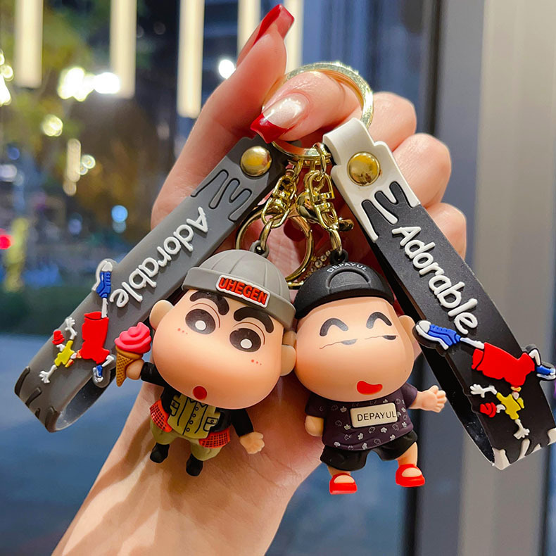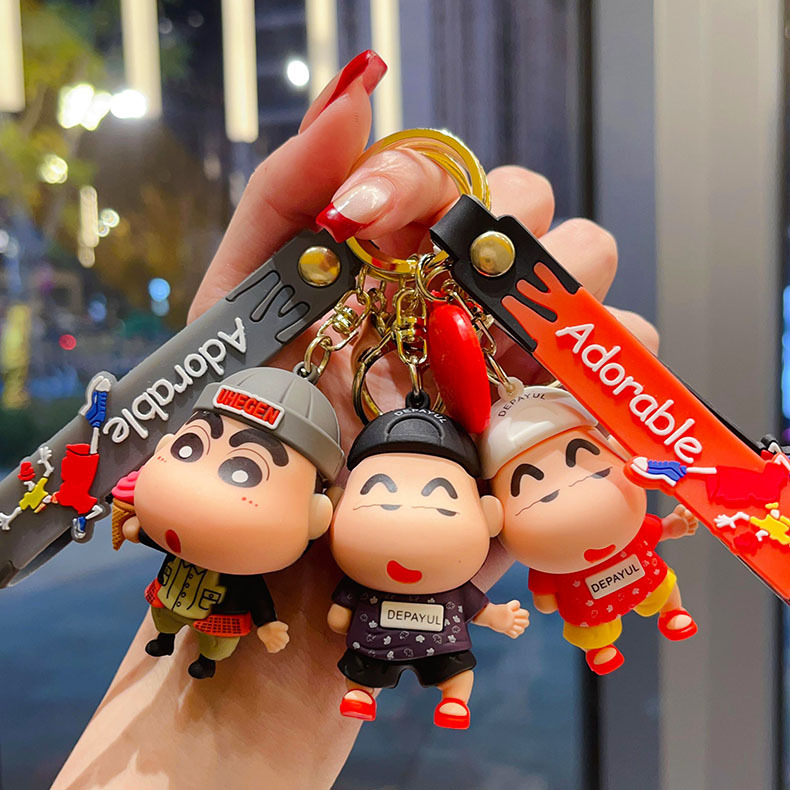 Crossdressing 크레용 신짱 키 체인 만화 Xiaobai Xiaoxin 인형 귀여운 펜던트 인형 기계 선물 도매스토어 가기