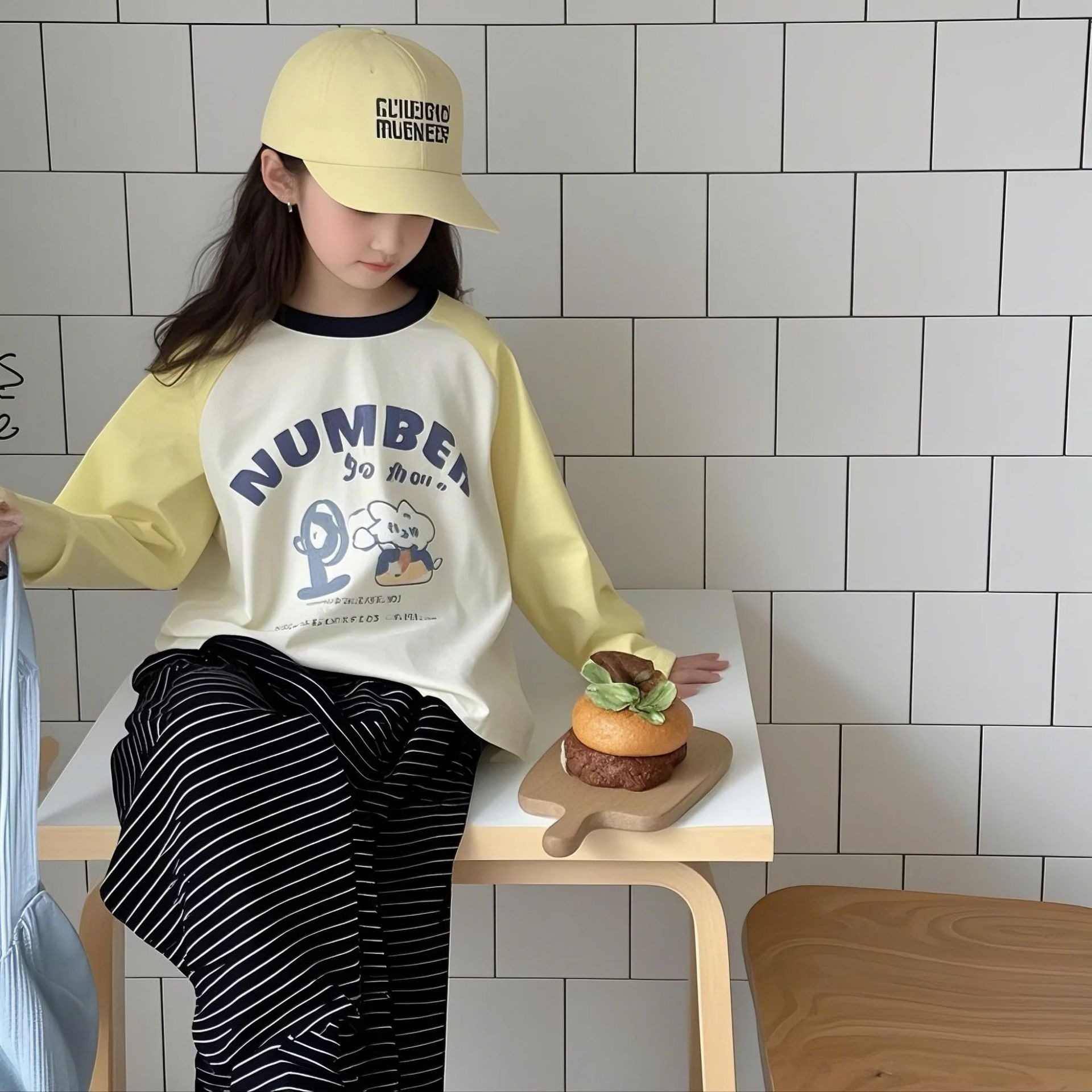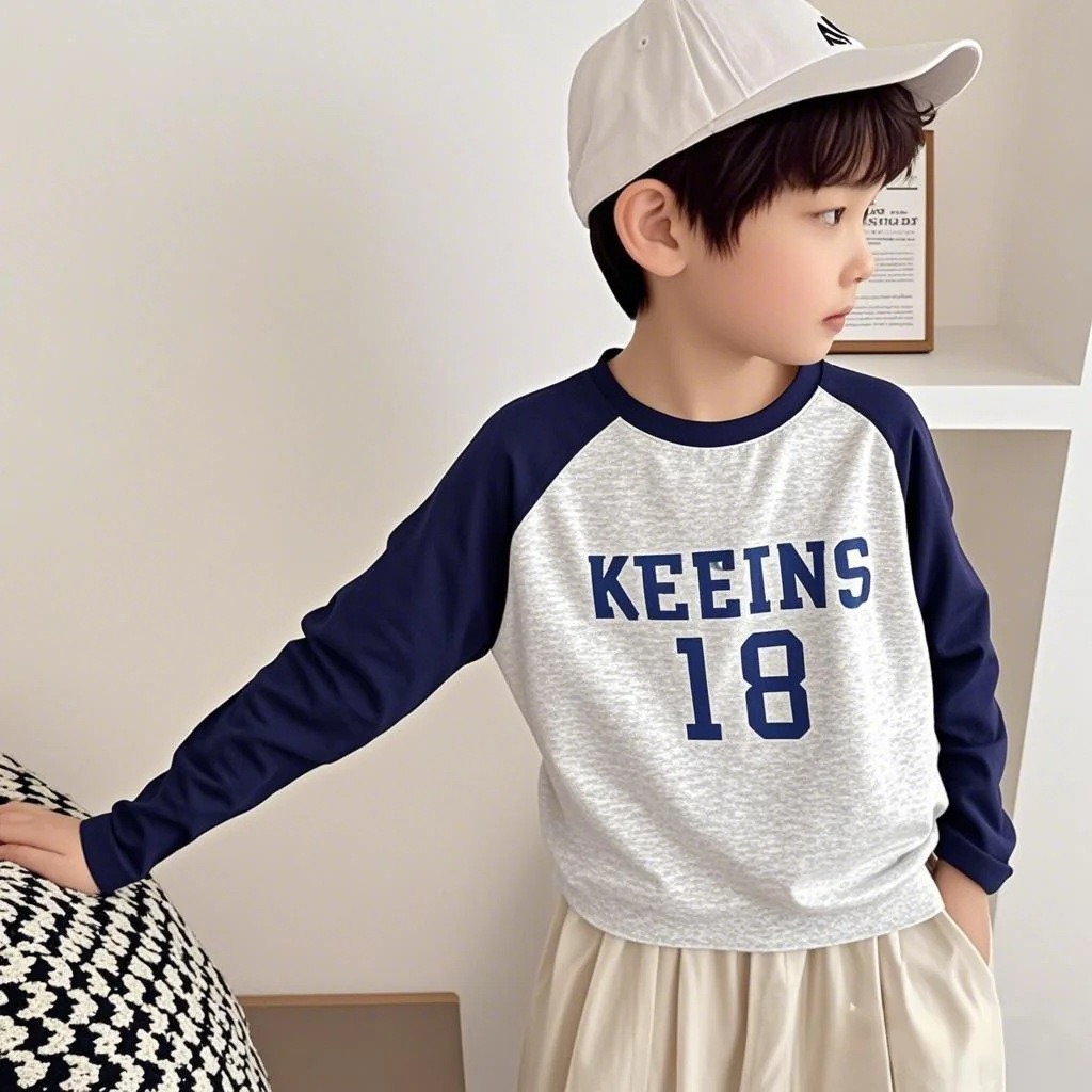 봄 새로운 코튼 콘트라스트베이스 셔츠 소년 소녀 숄더 컬러 매칭 티셔츠 클래스 A 코튼 롱 슬리브 캐주얼 티셔츠스토어 가기
