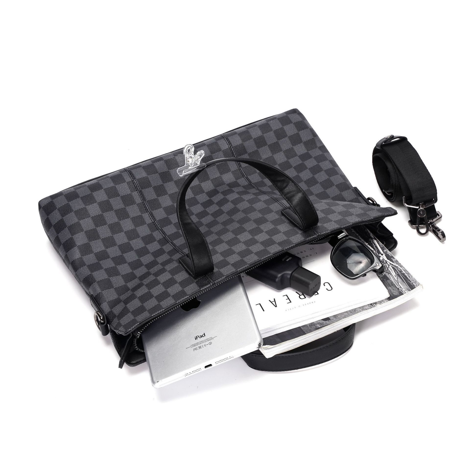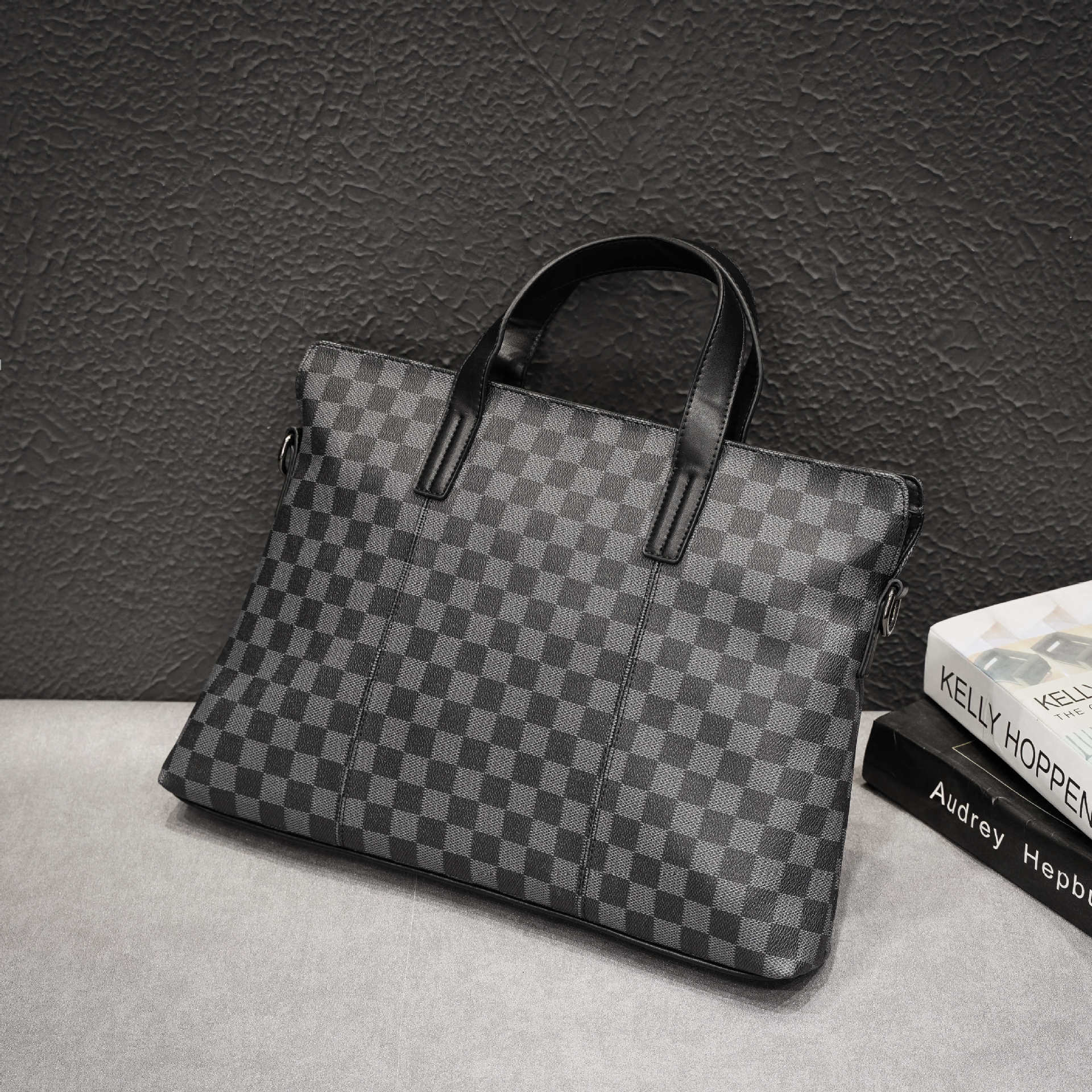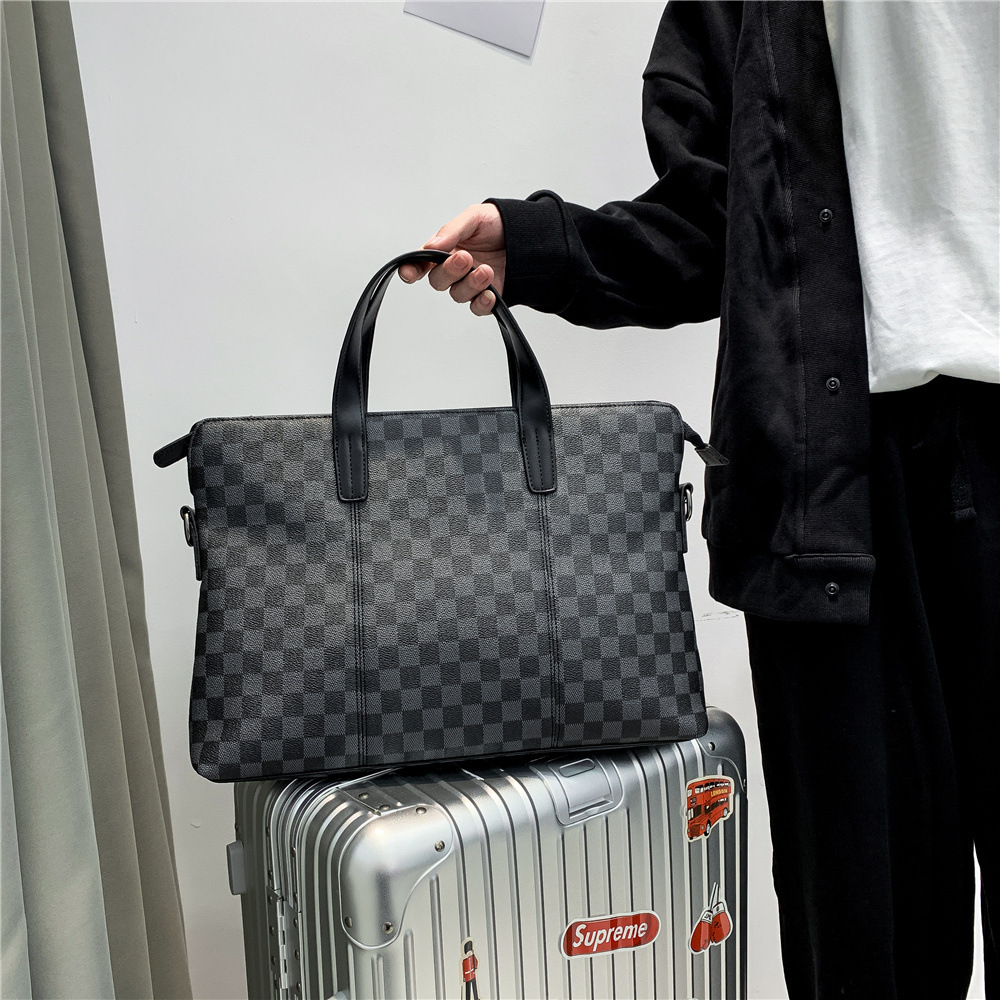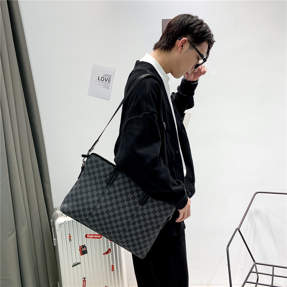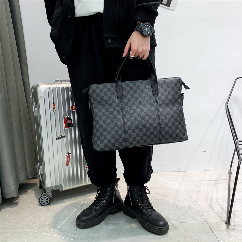새로운 비즈니스 가방 남성 핸드백 인쇄 격자 무늬 서류 가방 어깨 가방 크로스 바디 가방 배낭 유행 컴퓨터