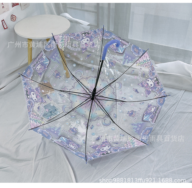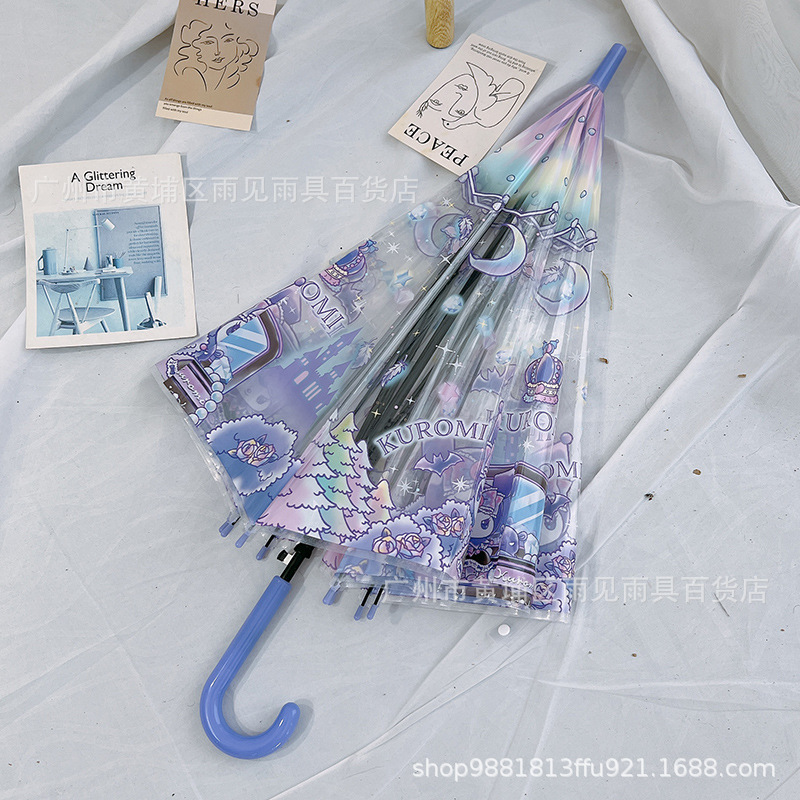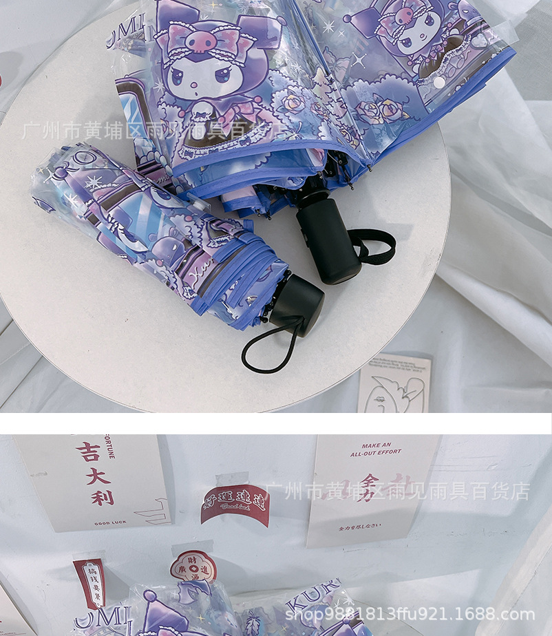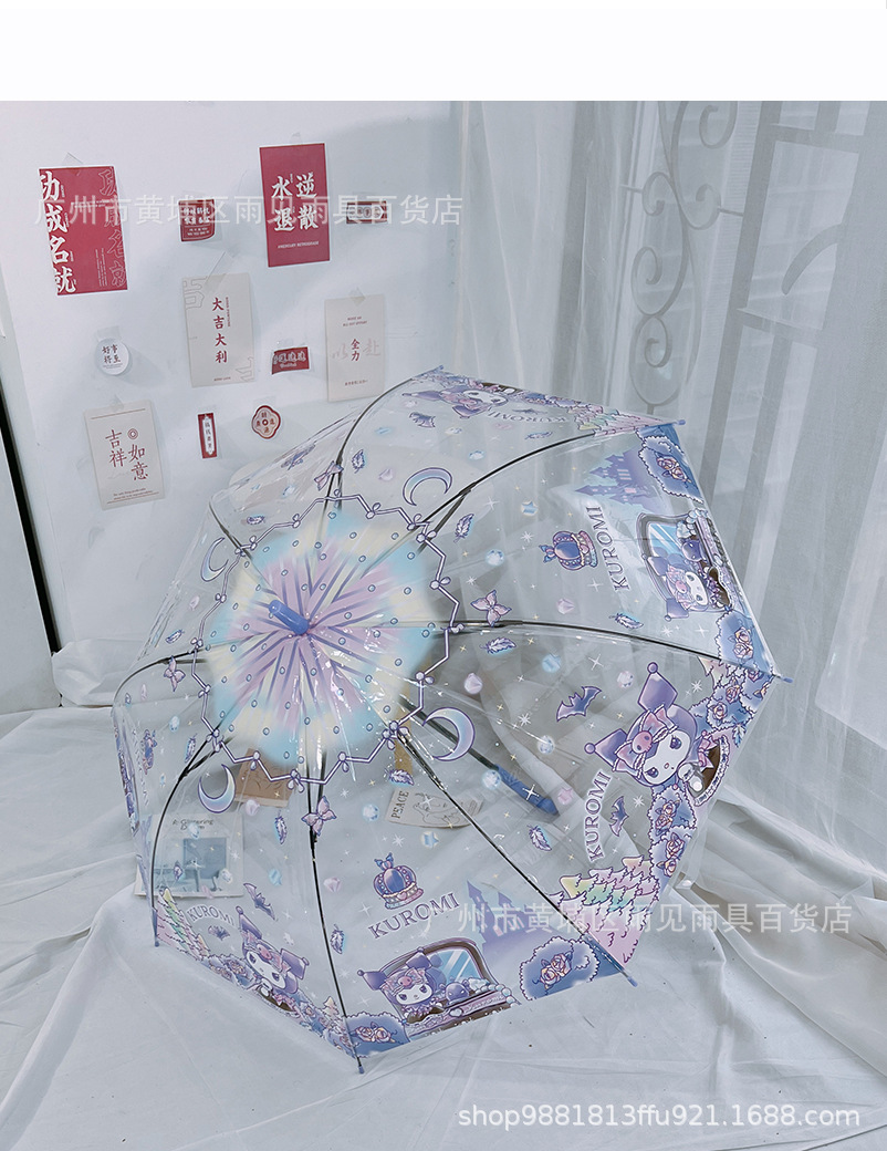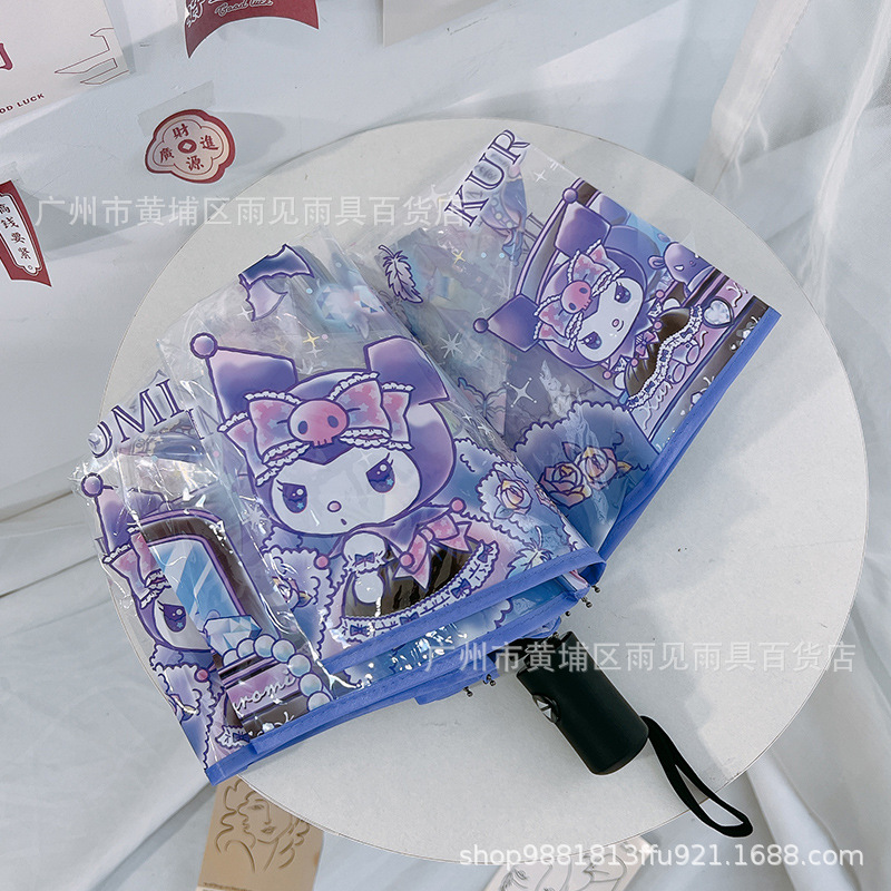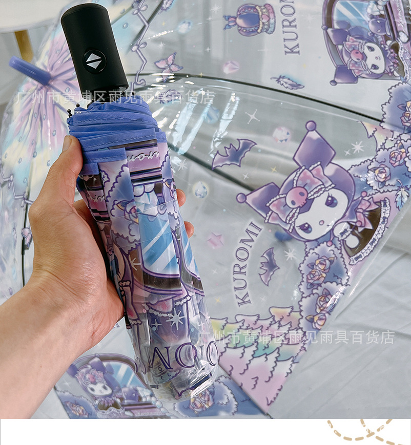 투명한 Kulomi 우산 3 배 우산 완전 자동 인터넷-유명한 스트레이트 핸들 우산 귀여운 접는 어린이 성인 애니메이션 소녀스토어 가기