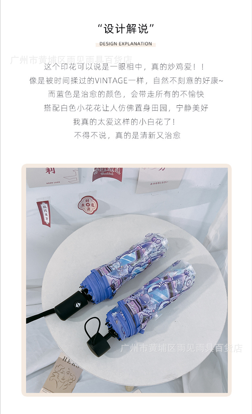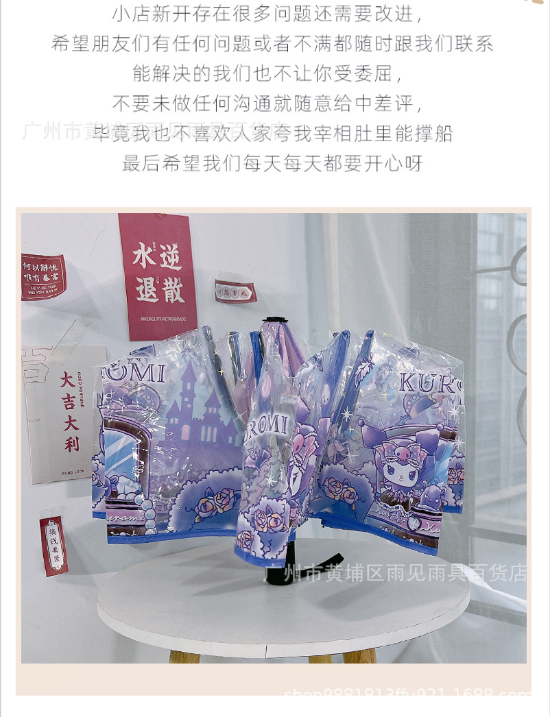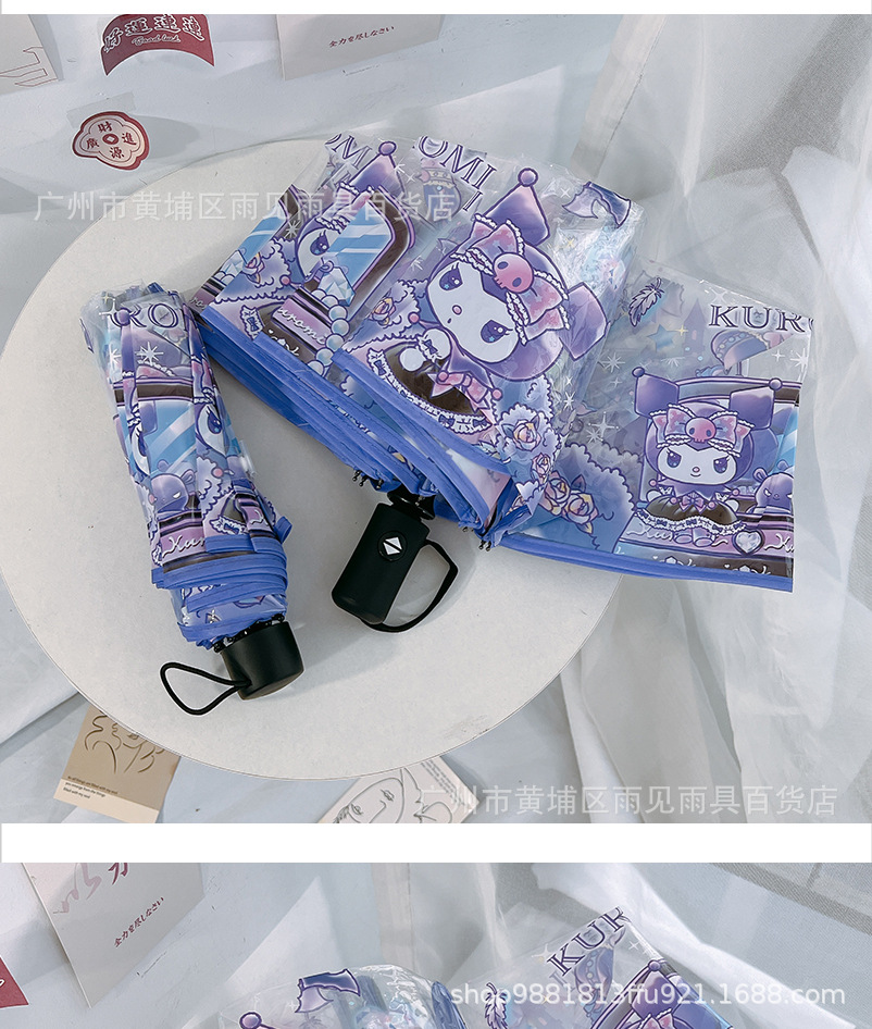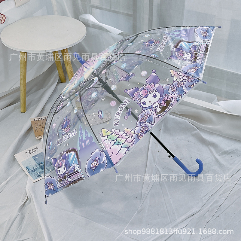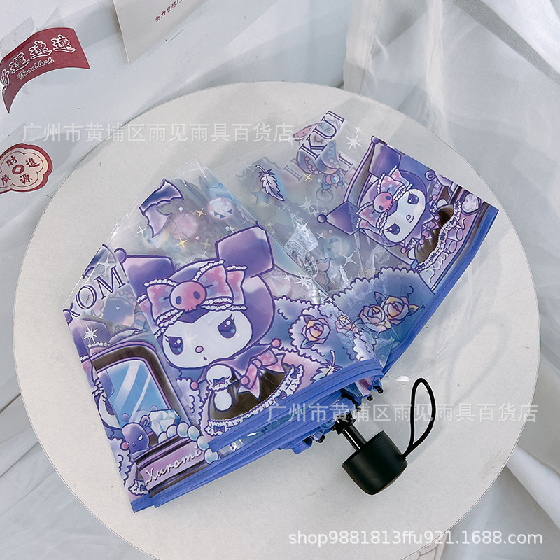 투명한 Kulomi 우산 3 배 우산 완전 자동 인터넷-유명한 스트레이트 핸들 우산 귀여운 접는 어린이 성인 애니메이션 소녀스토어 가기