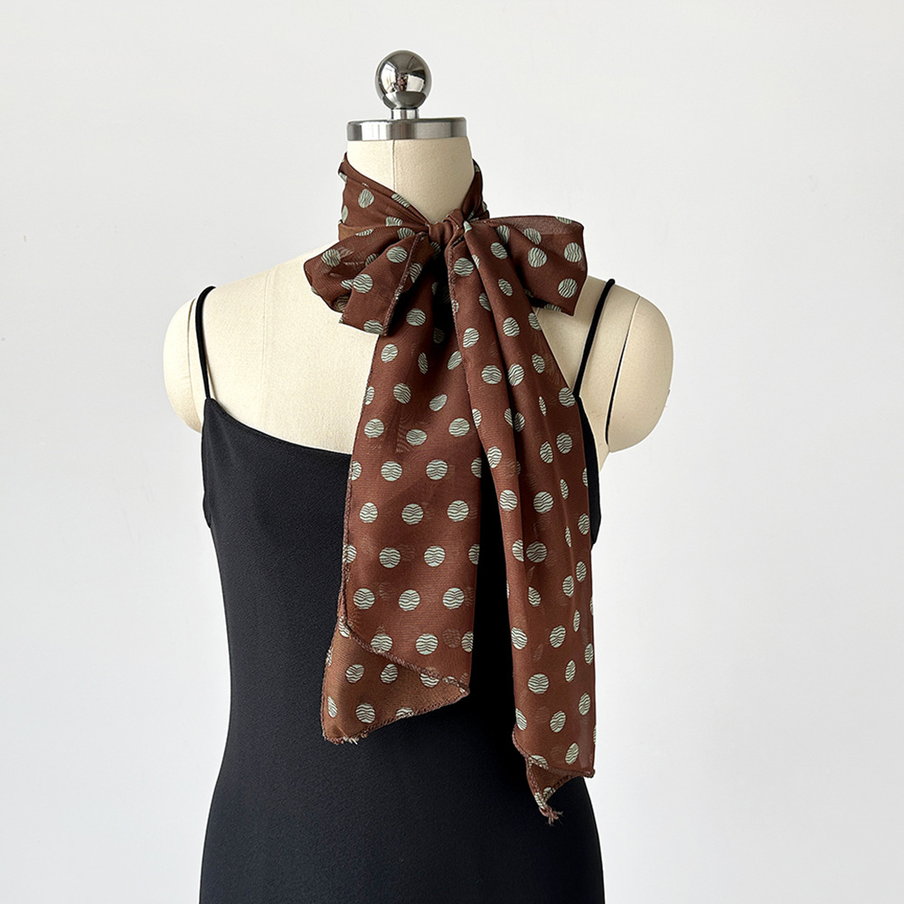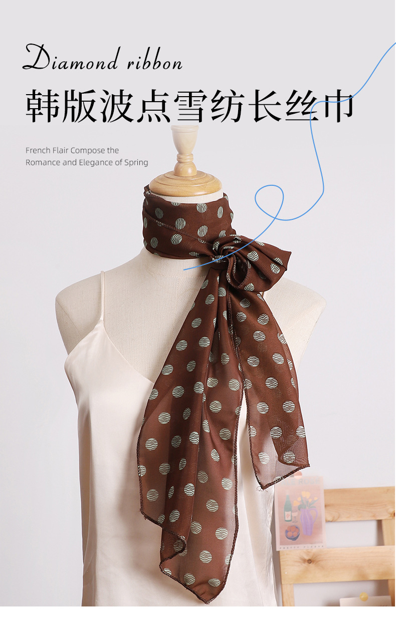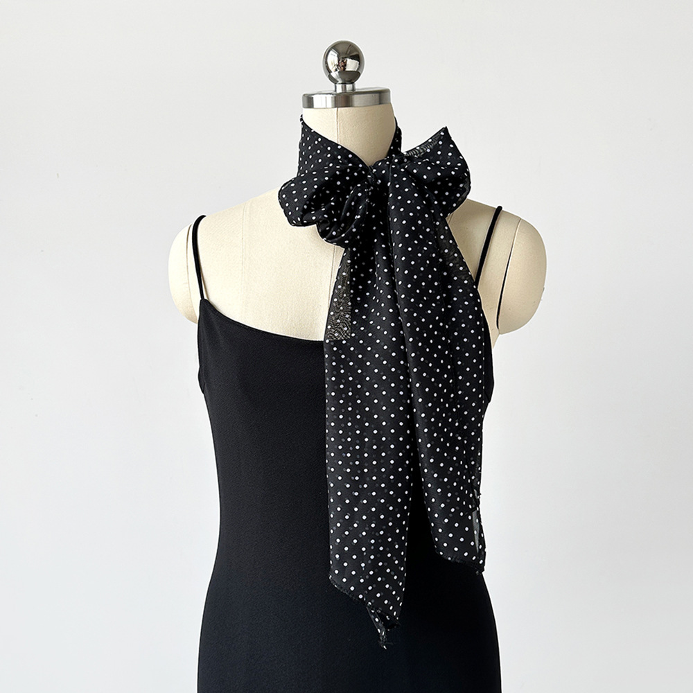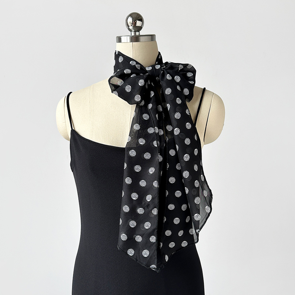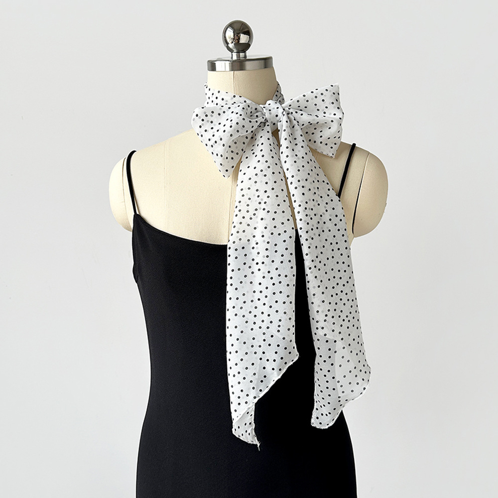 여성용 긴 폴카 도트 실크 스카프, 프린트된 편안한 리본, 2025 봄 가을 다용도 장식 스카프, 우아한 헤어밴드, 심플스토어 가기