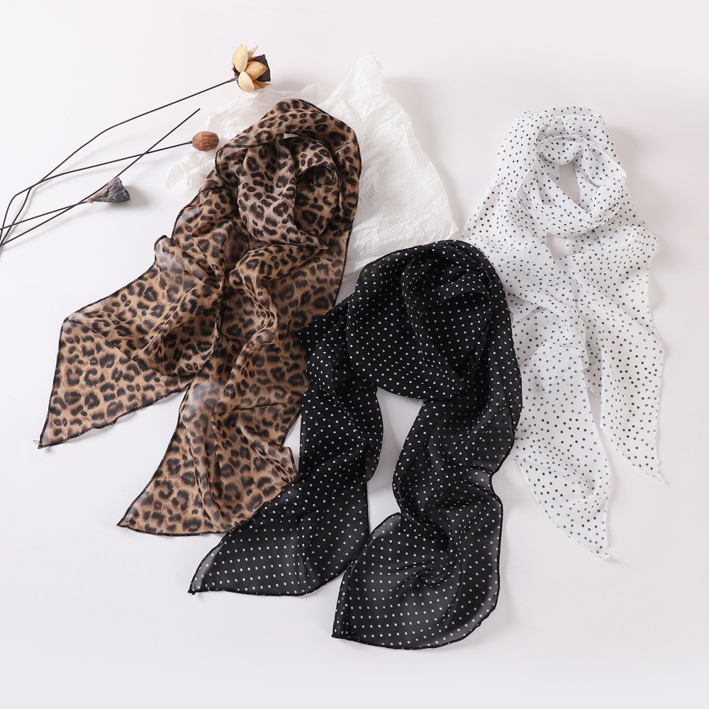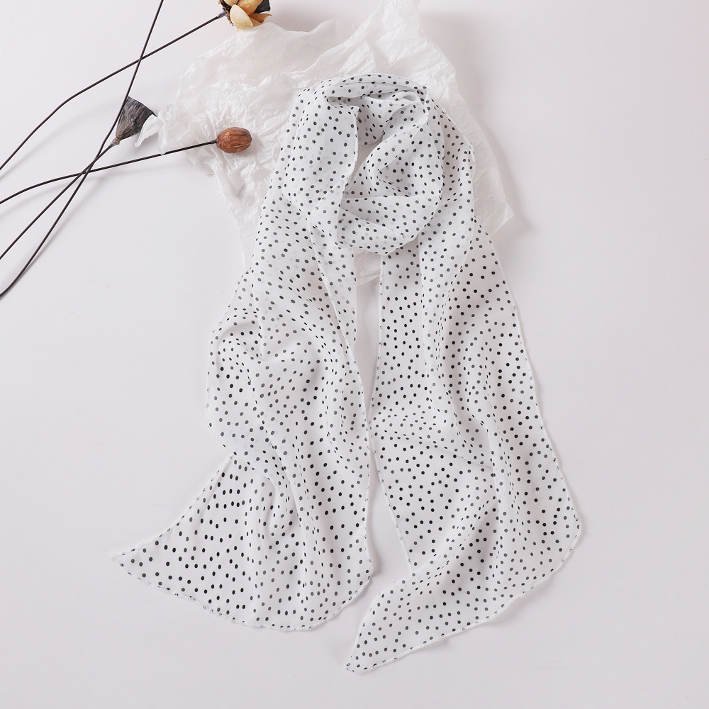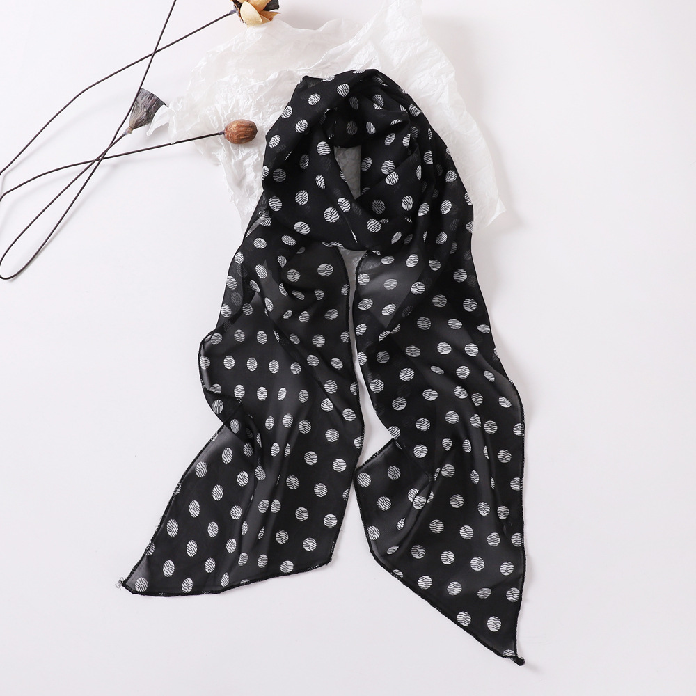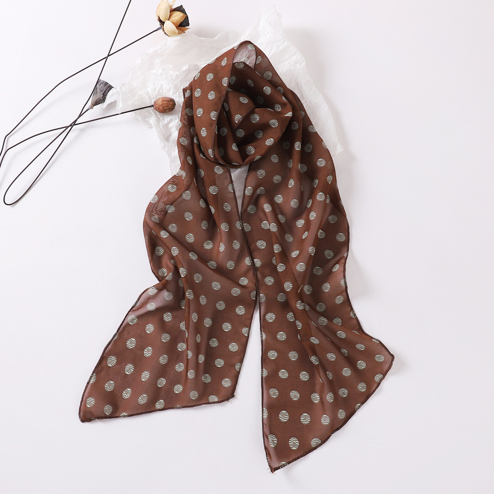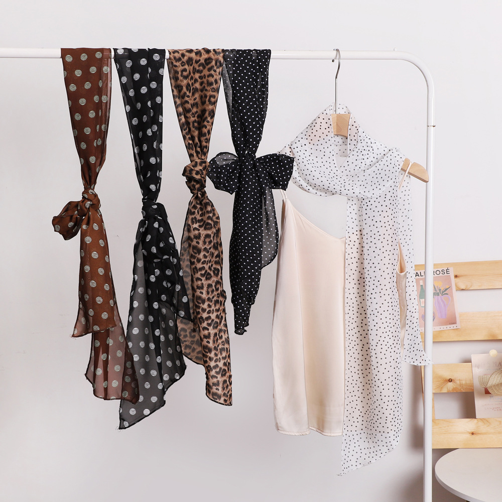 여성용 긴 폴카 도트 실크 스카프, 프린트된 편안한 리본, 2025 봄 가을 다용도 장식 스카프, 우아한 헤어밴드, 심플스토어 가기