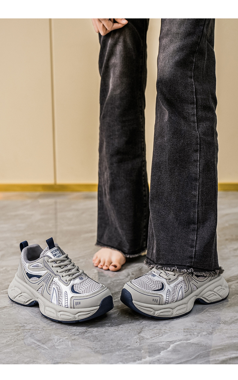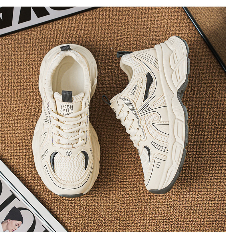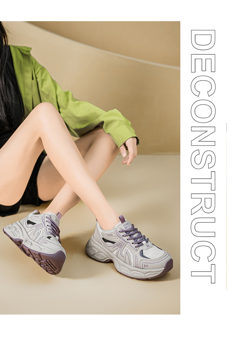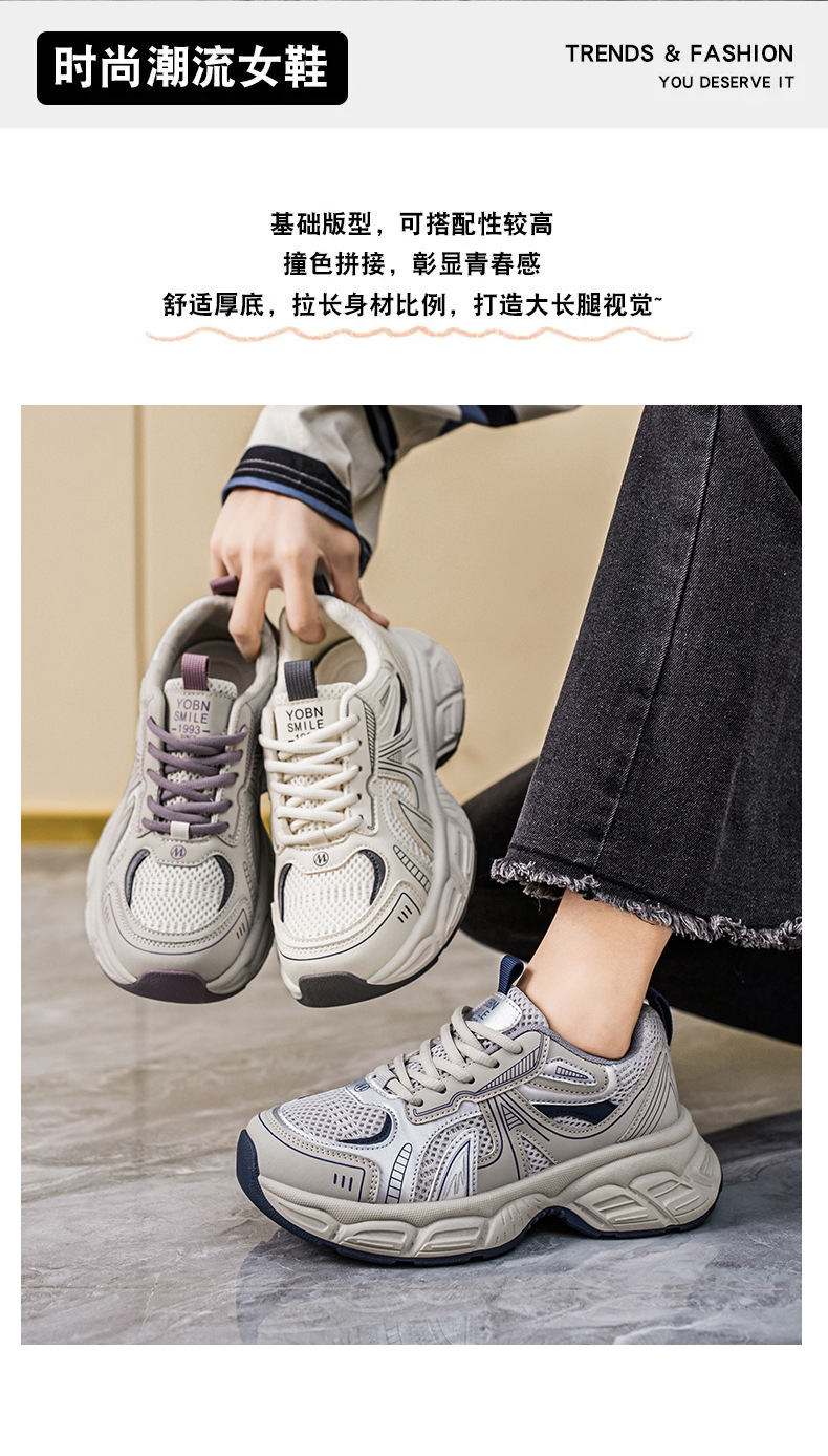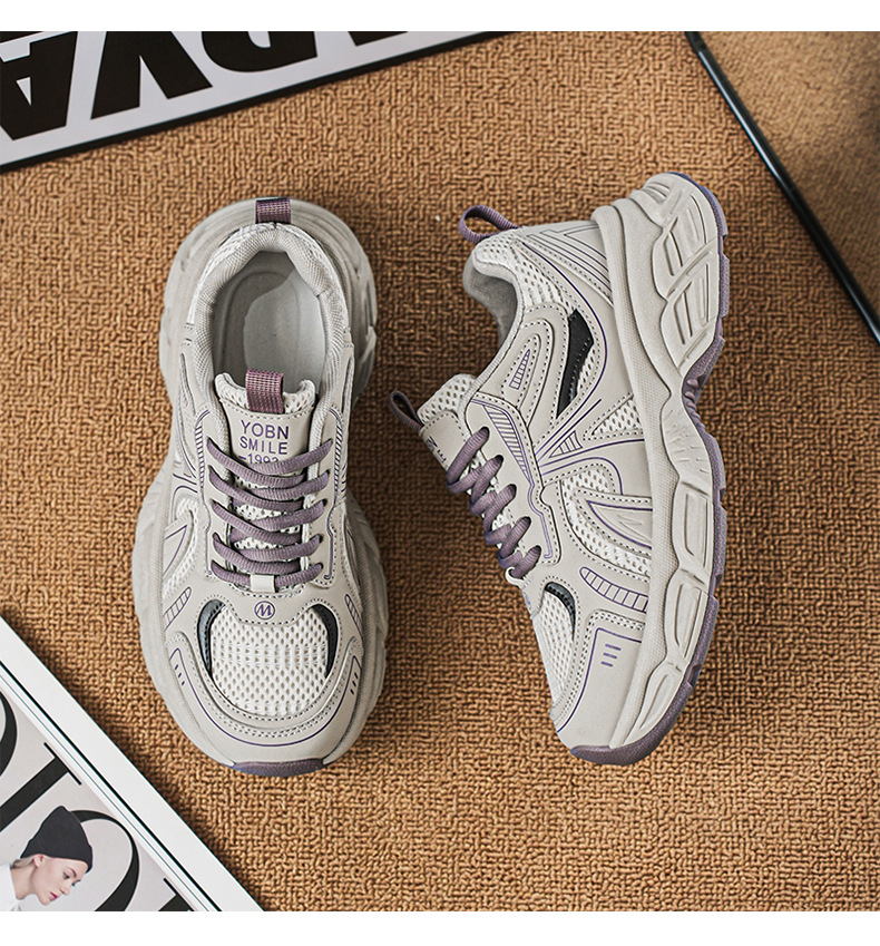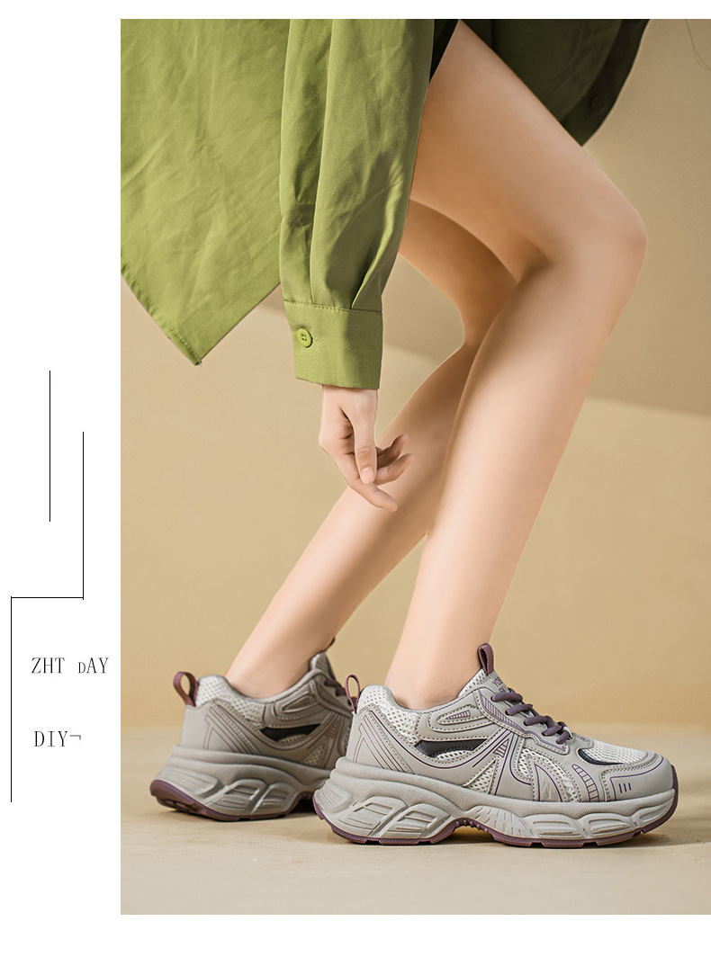 여성 신발 새로운 2025 컬러 블록 두꺼운 밑창 스포츠 높이 증가 가죽 신발 여성 학생을위한 세련된 한국식 통기성 토르 신발스토어 가기