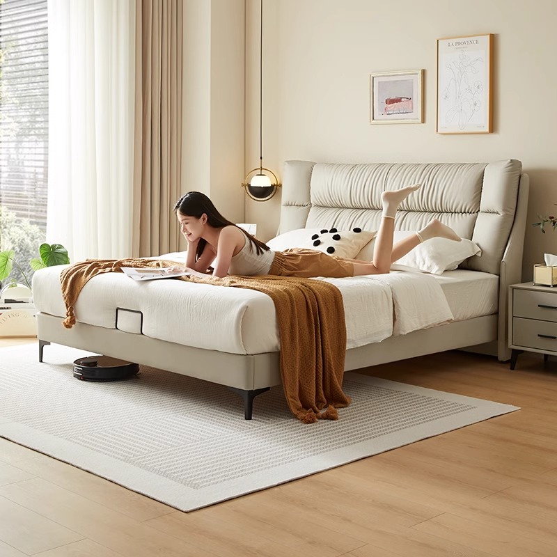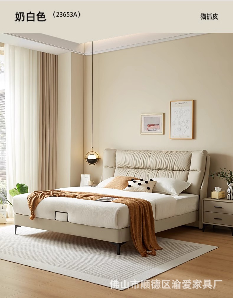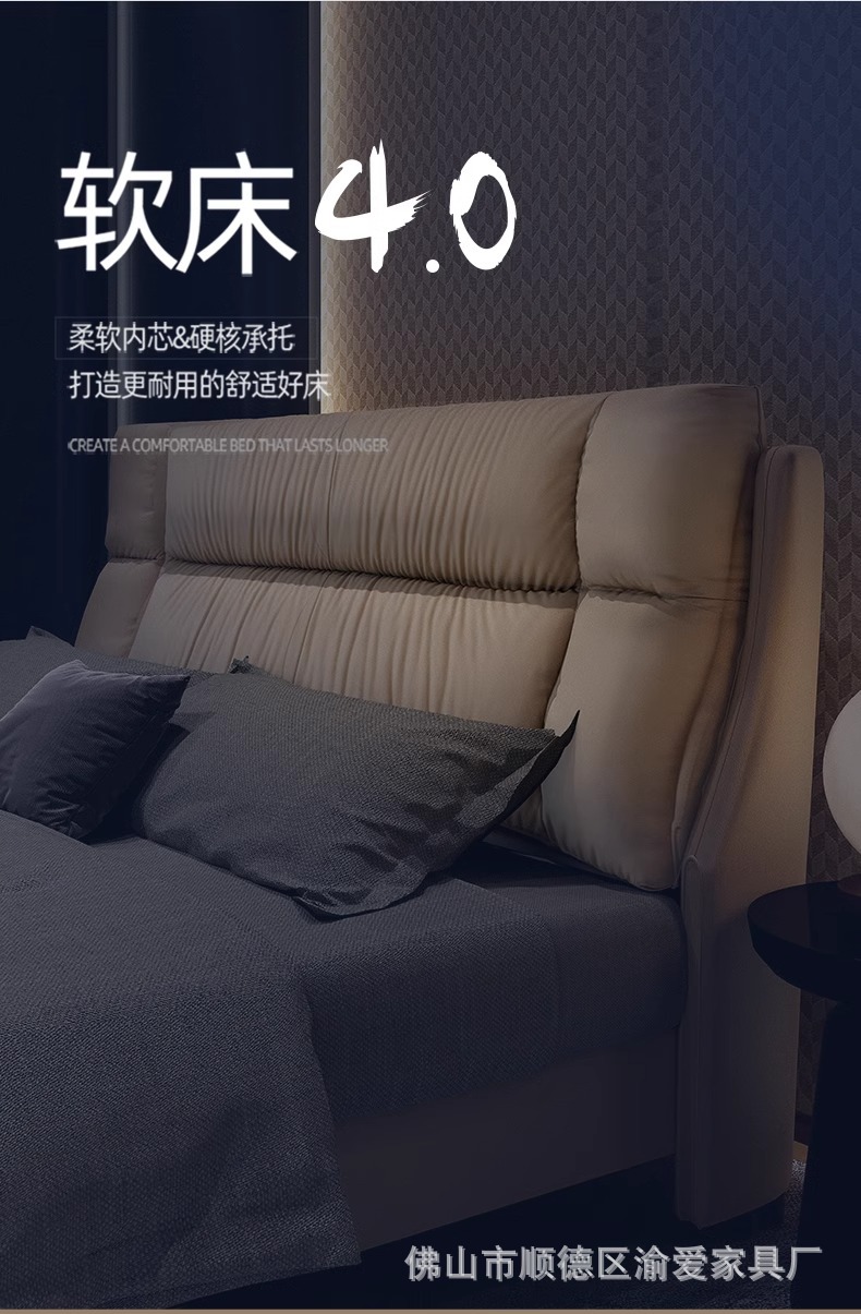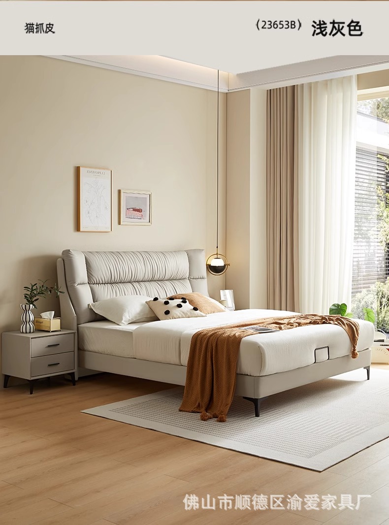 가죽 침대 마스터 침실 간단한 현대 빛 럭셔리 대기 1.8 m 더블 침대 웨딩 침대 보관 소프트 쿠션 가방 인터넷 인기있는 큰 침대