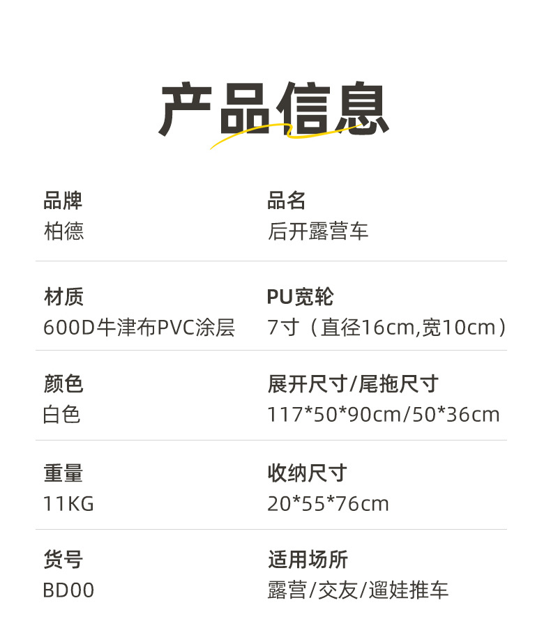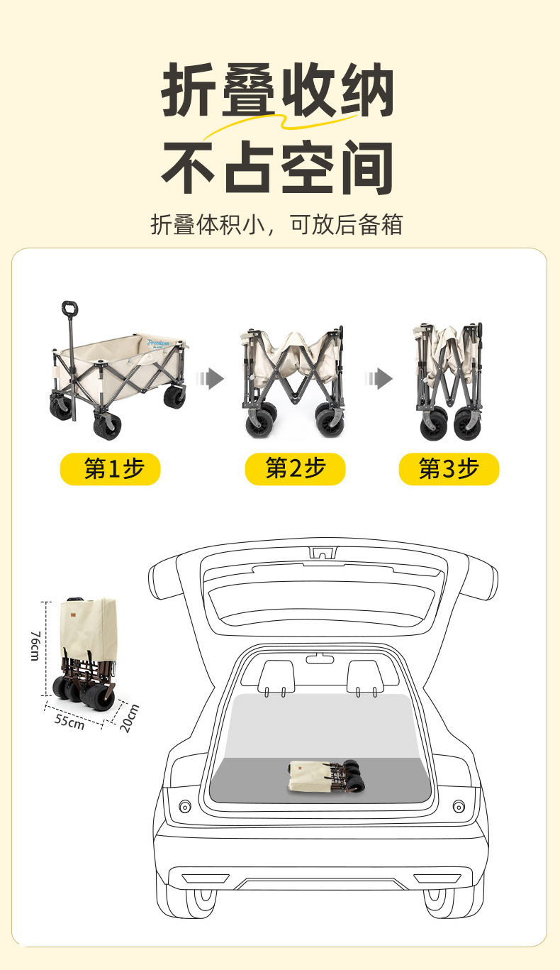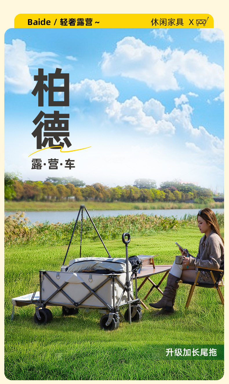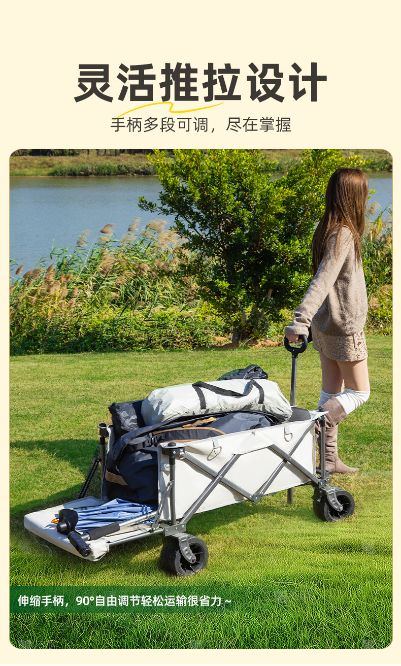 야외 백 오프닝 야영 카트 접이식 캠프 카트 아이들은 캠핑 트레일러 피크닉 손으로 뽑은 카트를 누울 수 있습니다