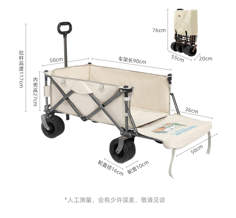 야외 백 오프닝 야영 카트 접이식 캠프 카트 아이들은 캠핑 트레일러 피크닉 손으로 뽑은 카트를 누울 수 있습니다스토어 가기