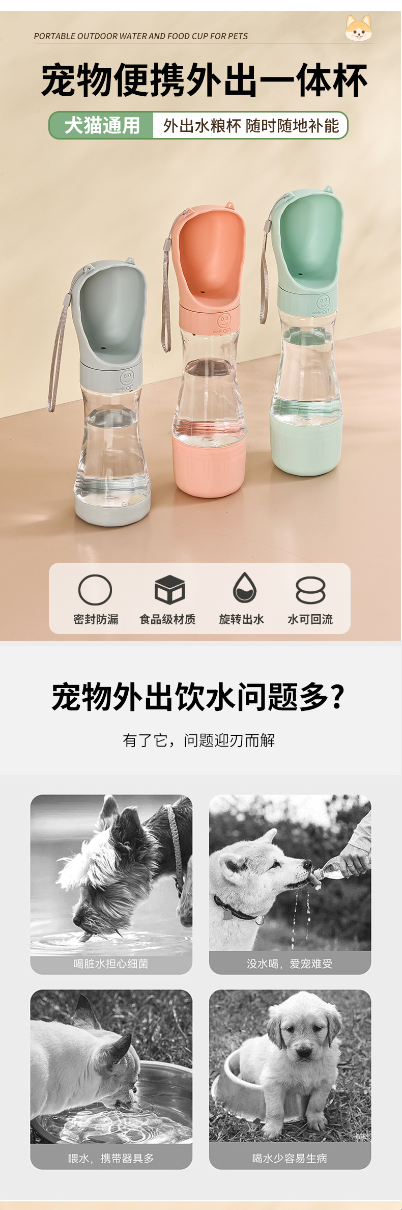 애완 동물 물 마시는 개 나가는 물 컵 음식 먹이는 컵 야외 다기능 애완 동물 동반 컵 물 공급 장치 사용스토어 가기