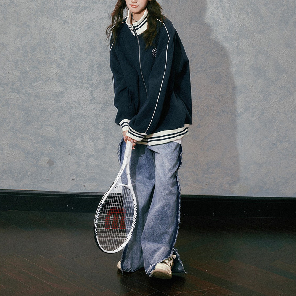 그레이 칼라 야구 세트 봄과 가을 코트 여자 아메리칸 레트로 스웨트 셔츠 캐주얼 루즈 올 매치 게으른 재킷 탑스토어 가기