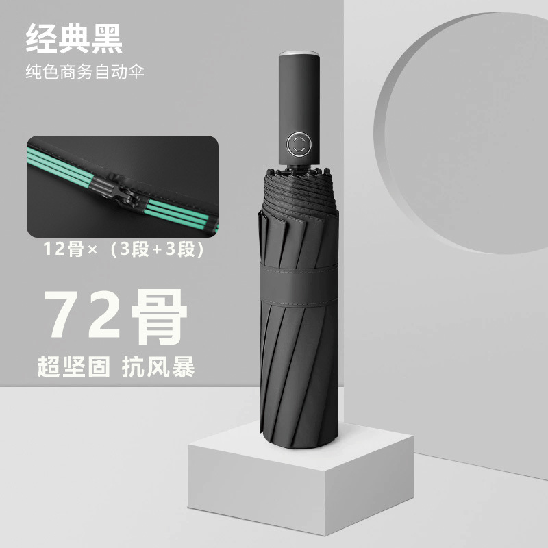 • 72본 자동우산 - 6킬 초내풍 비닐 완전 암막 - 클래식 블랙