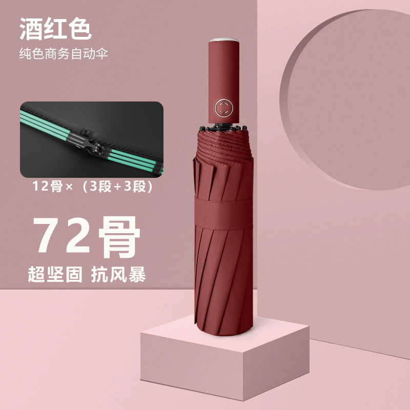 • 72리브 자동우산 - 킬 6개, 초내풍성 비닐, 완전 암막 - 버건디