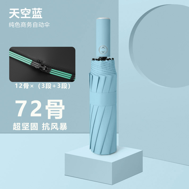• 72본 자동우산 - 6개의 용골, 초내풍성 비닐, 완전 암흑 - 하늘색