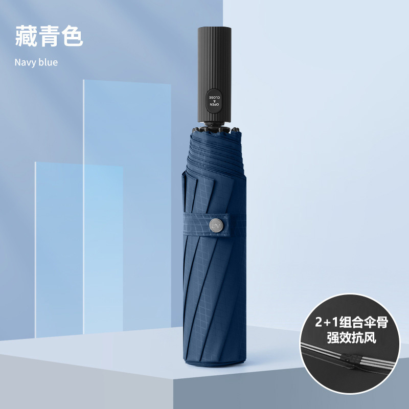 • 30립 전자동 줄무늬 우산 손잡이 [강화 2+1 조합 갈비뼈] 네이비 블루