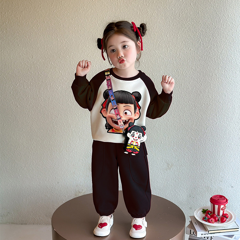 아들. 어린이 봄과 가을 나차 스웨트 셔츠 2025 새로운 봄 원피스 어린 소녀 만화 캐주얼 루즈 탑 2 피스 세트