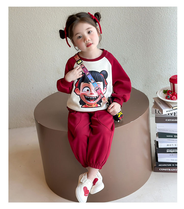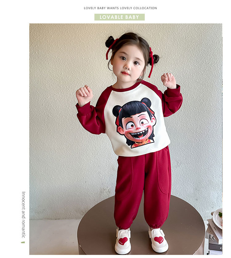아들. 어린이 봄과 가을 나차 스웨트 셔츠 2025 새로운 봄 원피스 어린 소녀 만화 캐주얼 루즈 탑 2 피스 세트스토어 가기