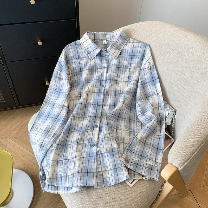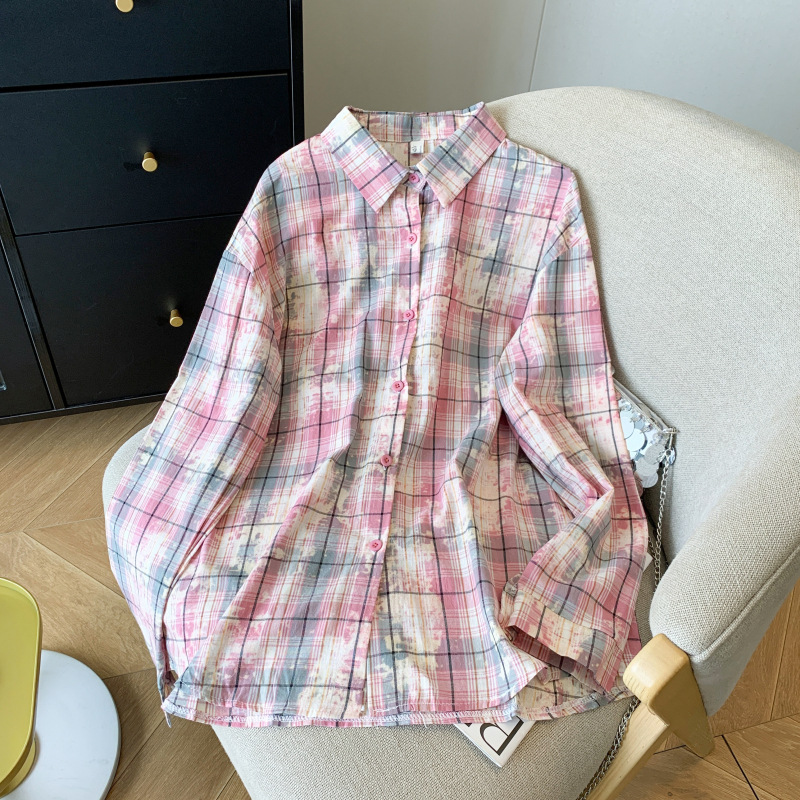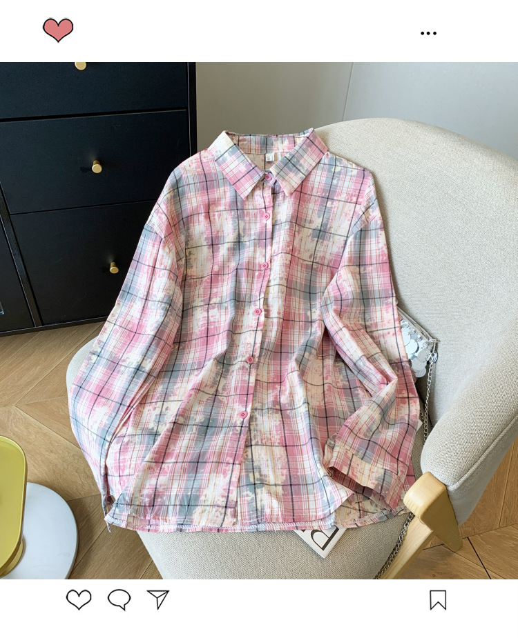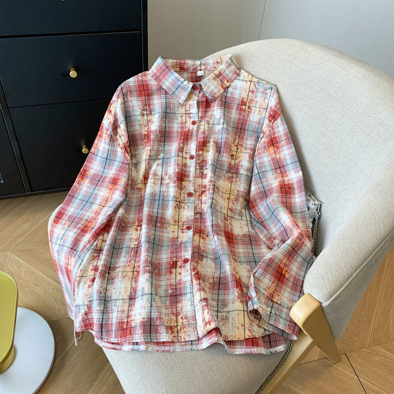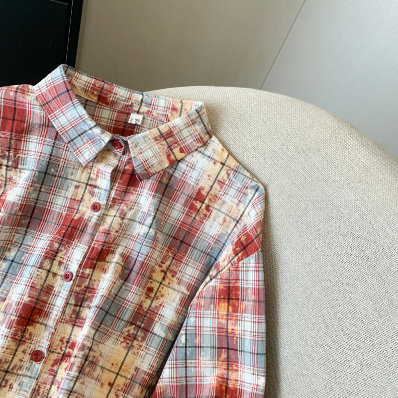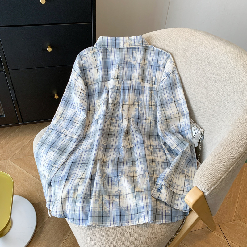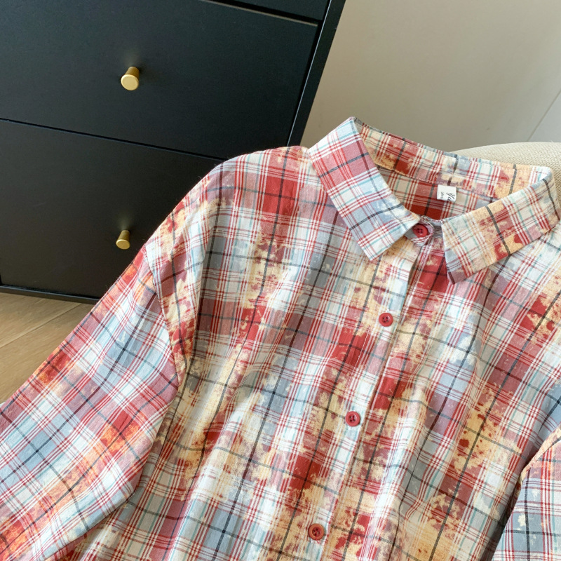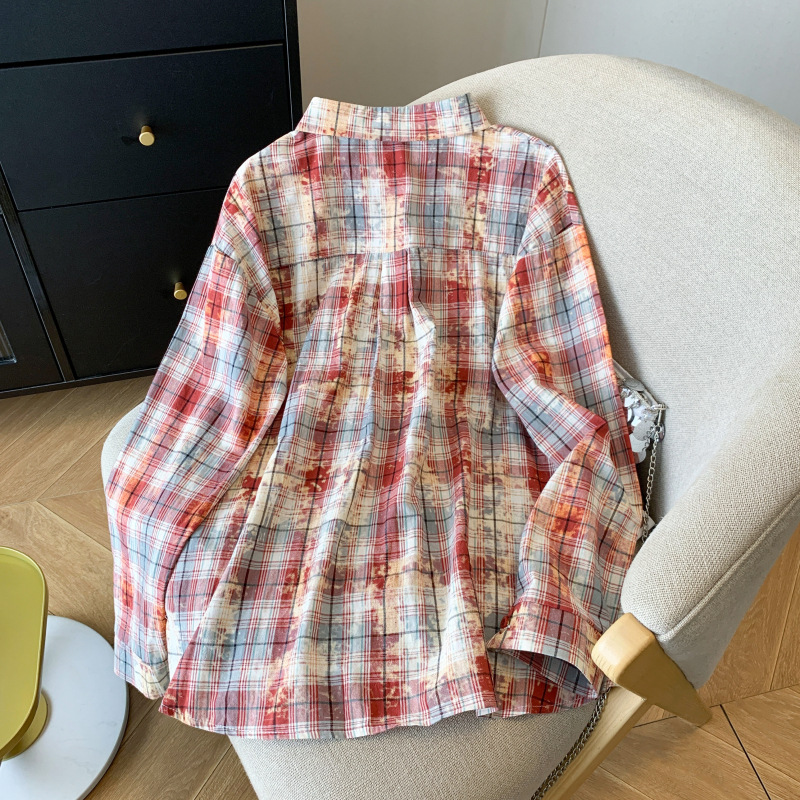 2025 봄 새로운 낙서 격자 무늬 셔츠 재킷 여성 디자인 센스 틈새 느슨한 긴팔 최고 패션 트렌드스토어 가기